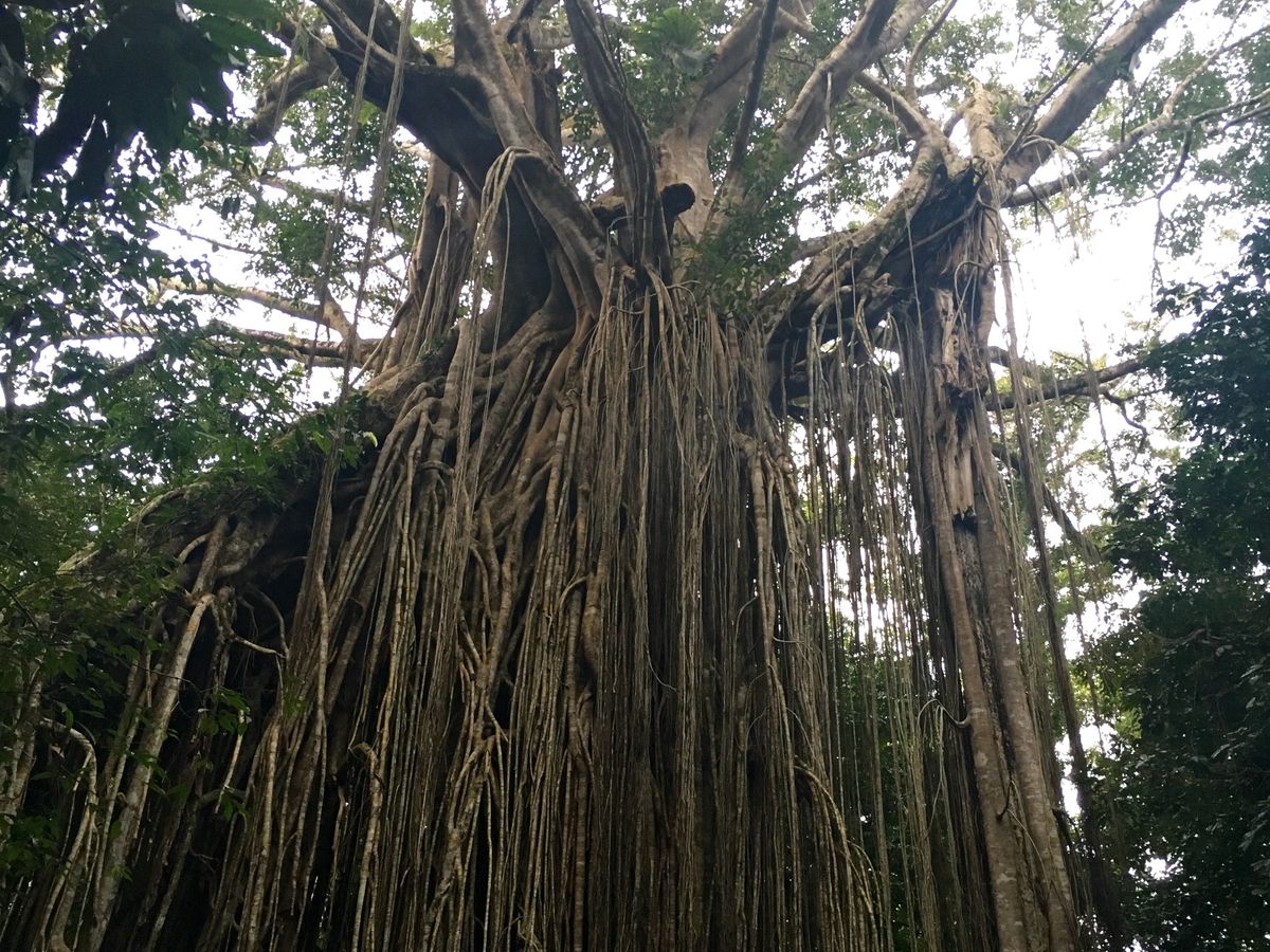 次はカーテンフィグツリー、『通称絞殺しの木』カーテンのように根を垂らす巨大なイチジクの木を見学しました。想像以上に大きく神秘的で、自然の力の凄さを感じました。