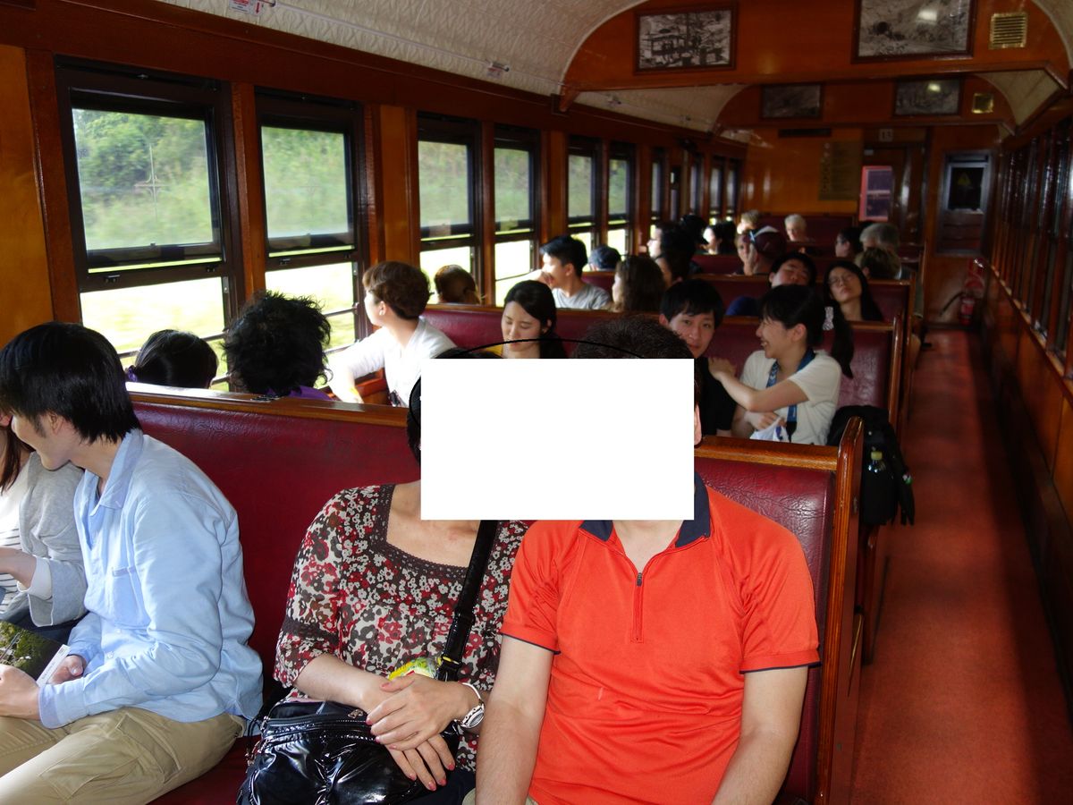 鉄道は窓に垂直に片側4人掛けの見合い席なので、奥の席からだとかなり見難いです。GW中だからだとは思うのですが、満席で私たちは一番奥側になってしいました。