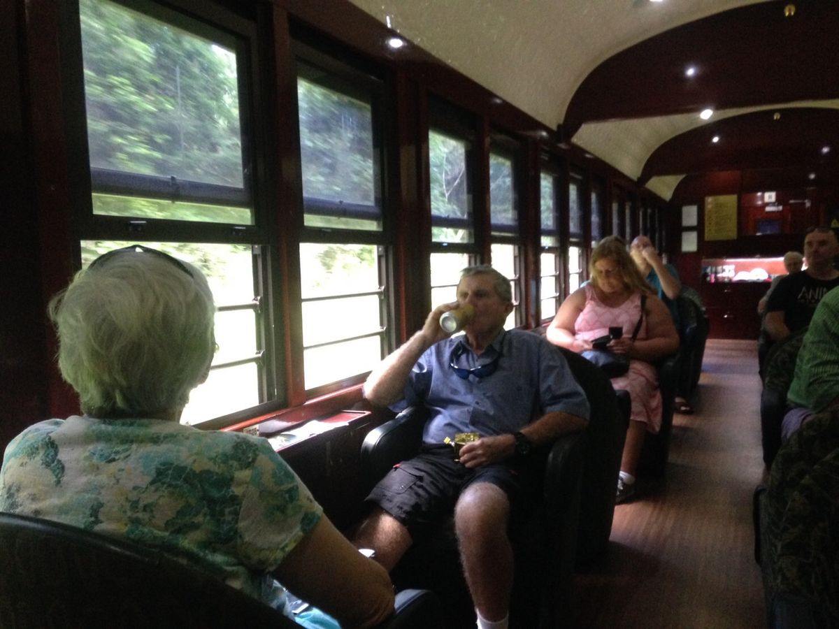 復路の高原鉄道はゴールドクラスを利用!一人一人個別のソファーは優越感が味わえる~おかわり自由のドリン&軽食サービスも、車窓もまさに「富士通:世界の車窓から」4人かけと2人かけが有るゴールドクラス指定席の座席は自分で選べませんが、絶対4人がけで進行方向向きの席がBEST!(ダメ元でも希望すべき)4人かけと2人かけは進行方向に対し左右に配置されているが、左右ではみえる車窓が全く違う!CAIRNS旅行一番の思い出となりました!