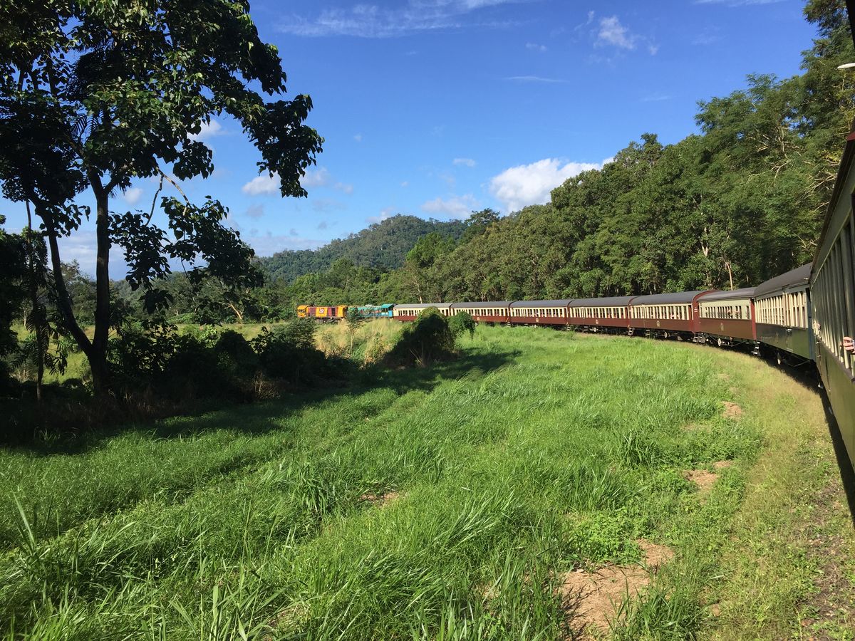 行きのキュランダ鉄道ではちょうど見晴らしのいい真ん中辺りの車両を手配してくれました。日本人ガイドさんがその都度絶景など案内してくれますので、写真撮影する際非常に助かりました。