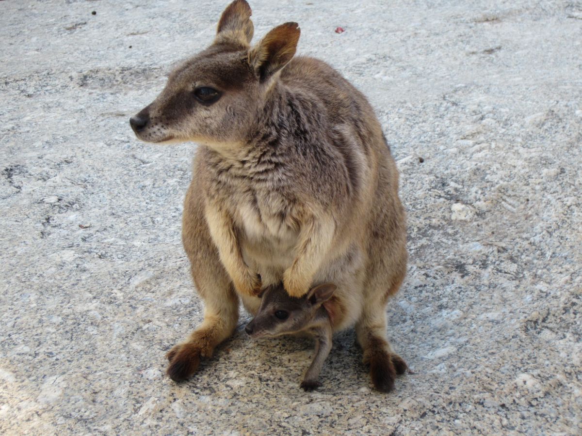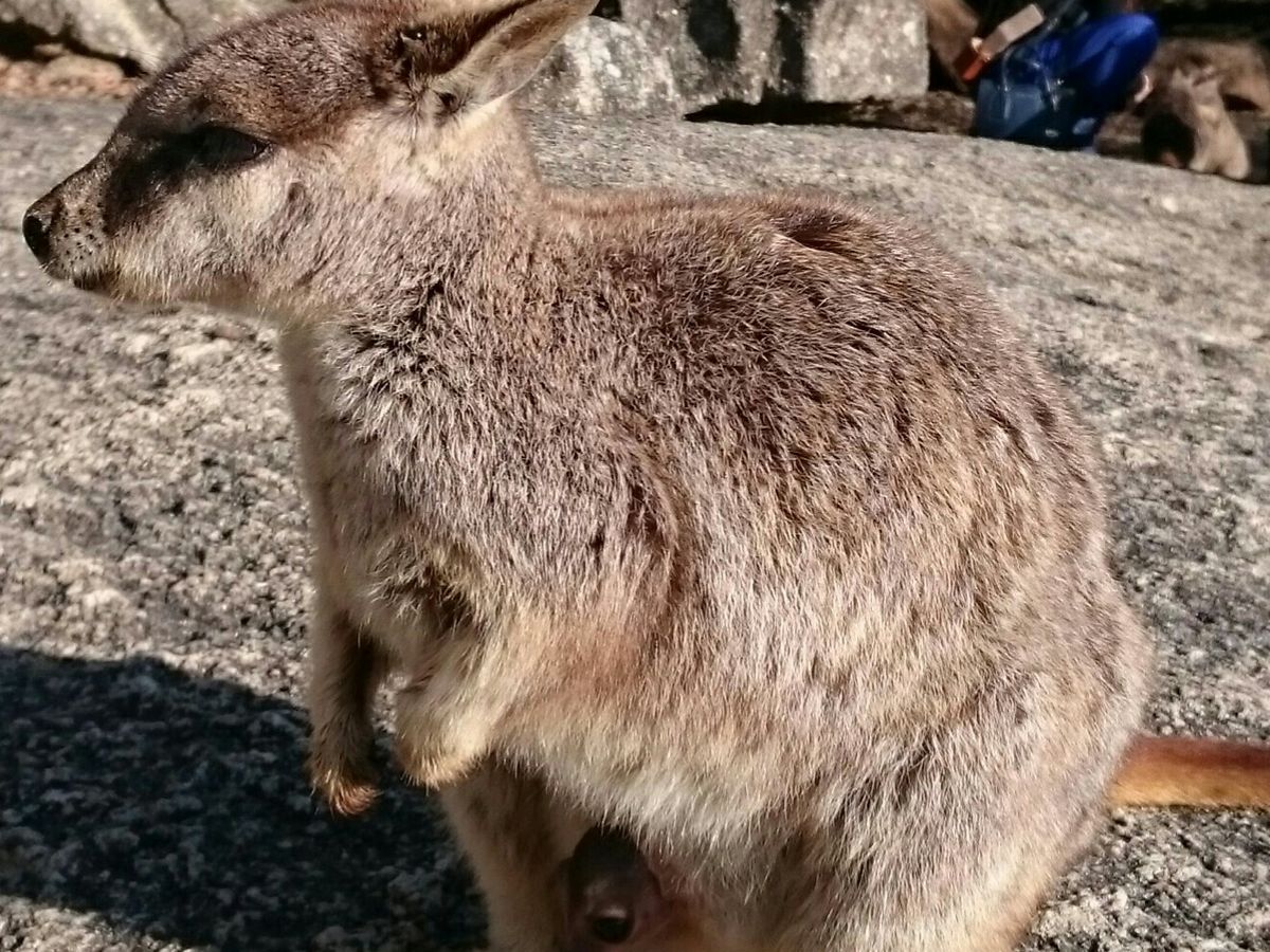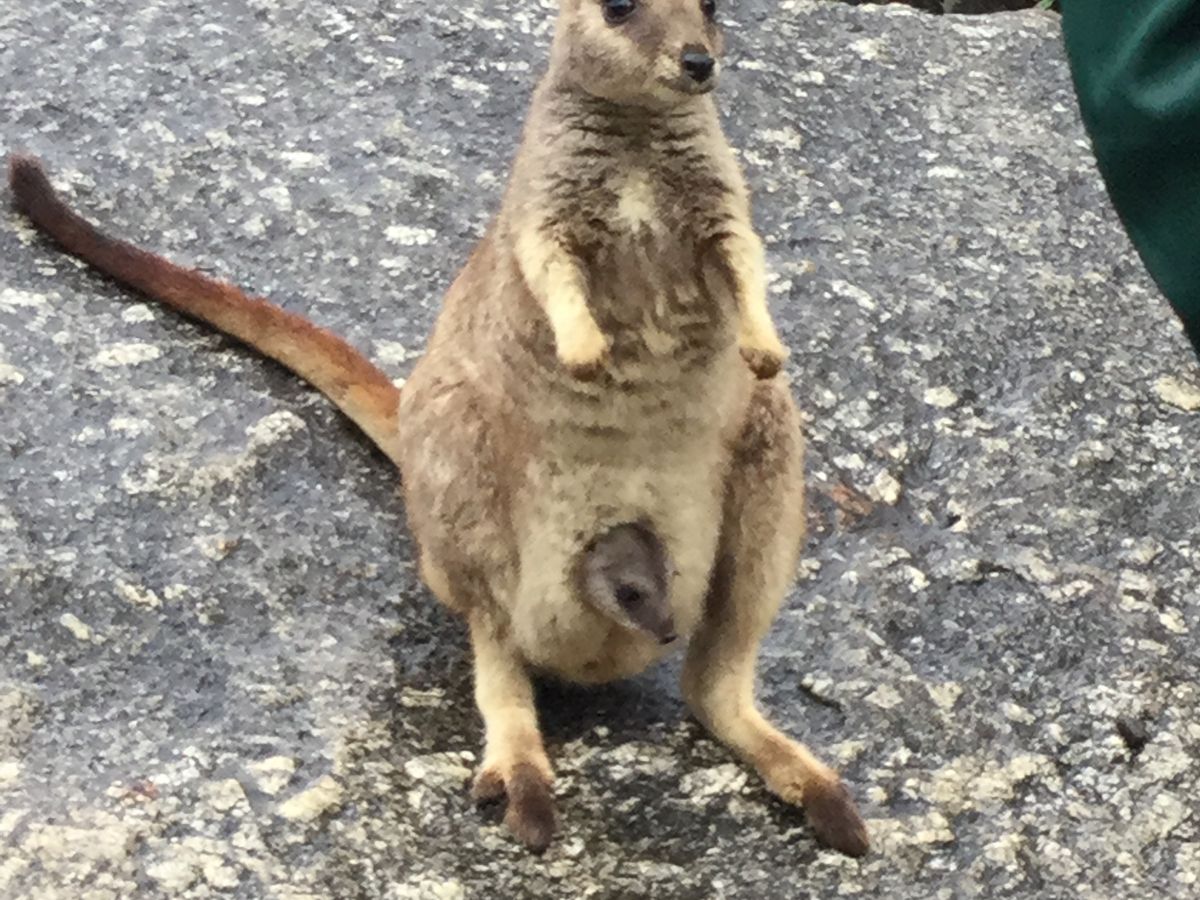 お腹に赤ちゃんのいるロックワラビーも見られました。