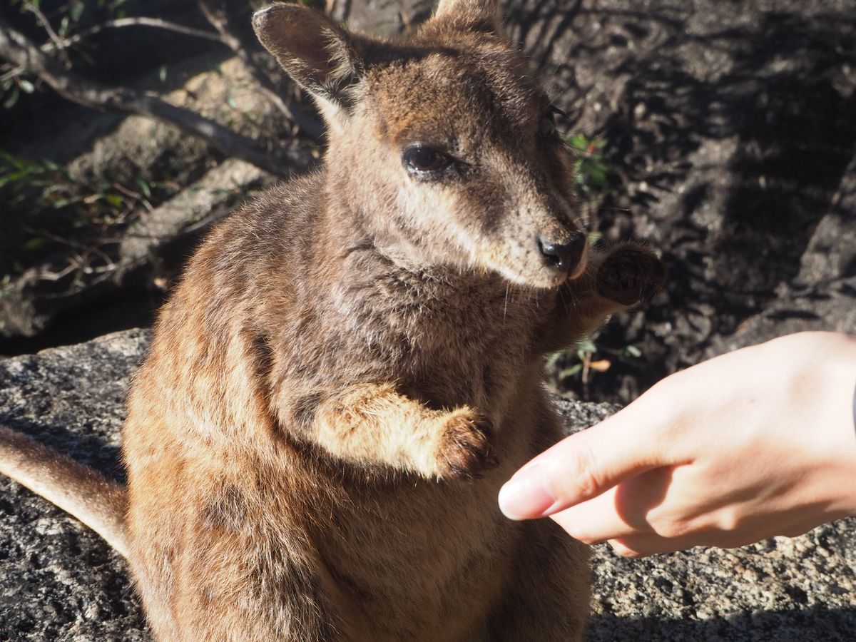ロックワラビには間近で餌をあげることができ、とても可愛かったです。ロックワラビのお腹の袋の中には顔を覗かせてる赤ちゃんを見ることもできラッキーでした。