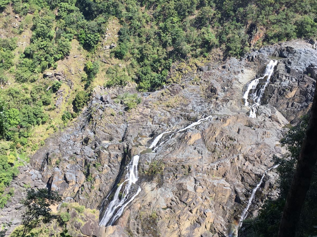 スカイレールの途中のボードウオークからもキュランダ鉄道の一時停車場所からも同じ滝が見えますが、乾期で雨が降らないためか水が少なく、豪快さがなくがっかりでした。