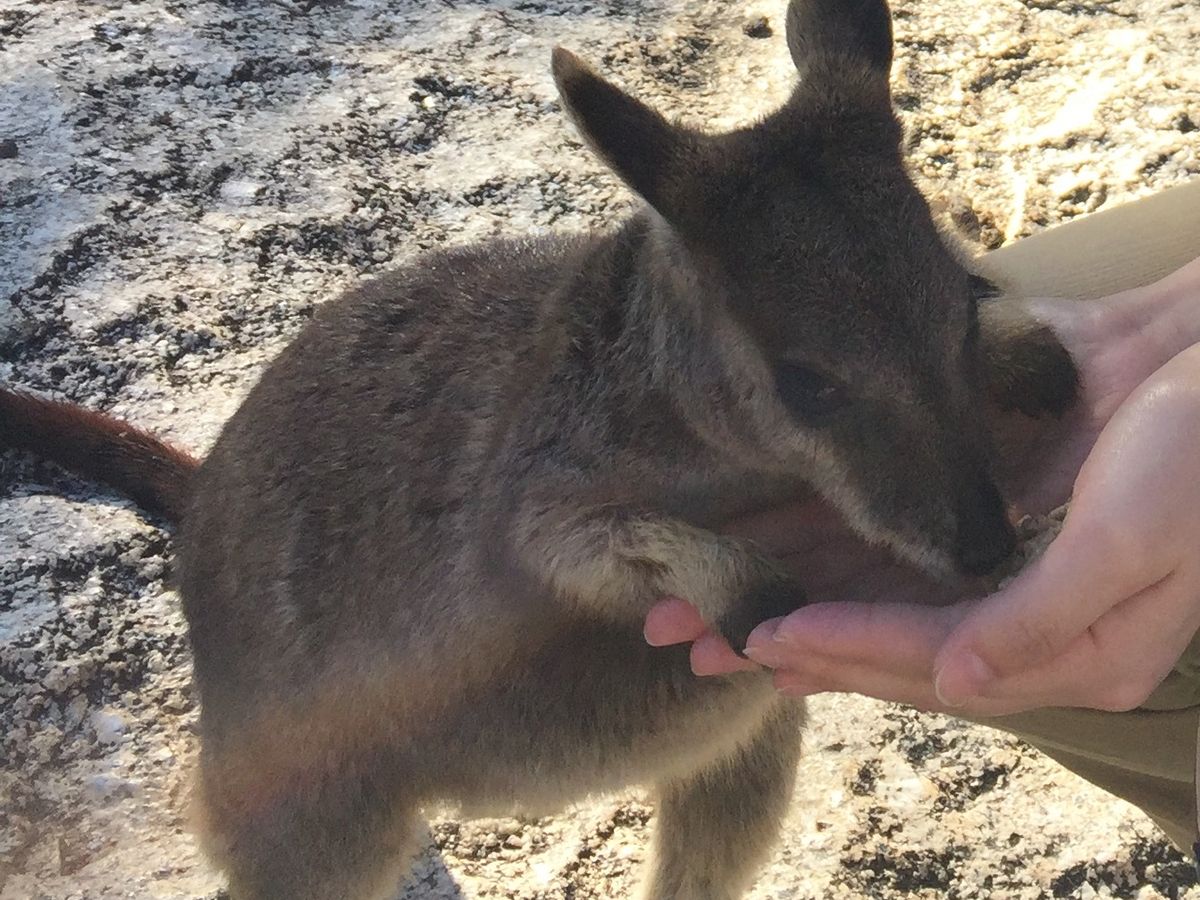 餌付け体験では野生のロックワラビーに餌をあげましたが、早く食べたいのか餌を持ってる手に爪を立ててきたのが少々痛かったのですがとても可愛かったです。
