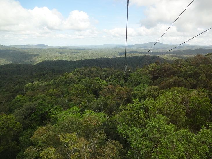 スカイレールは1時間くらい熱帯雨林の上を走っていきます。高所恐怖症の私ですが、そんなことはどうでもよくなるくらい圧巻の景色でした。