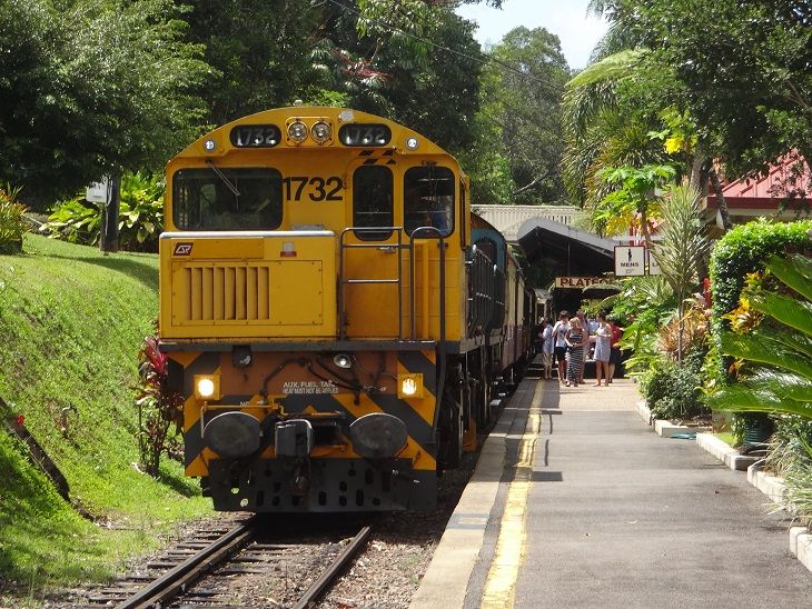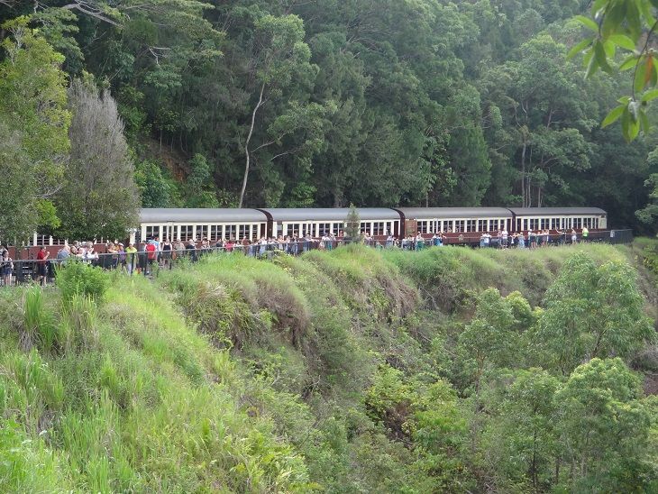 キュランダでは自由に動き回れ、高原鉄道の出発時間までは十分融通の利くチケットなんですが、帰りの高原鉄道で、びっしり観光客がおり、「あ~、これ相当人気あるんだ」と思っていたところ、数車両はその状況でしたが、他の客車はのんびりゆったり見て回れるほどの少なさ、そのうえ、乗り合わせた観光客がマナーが悪く、ワーワー騒ぎ出し景色を拝める環境では全くなかったです。現地のオージーが怒鳴りつけ、一瞬静かになりましたが、ほぼ1時間半地獄の席でした。
