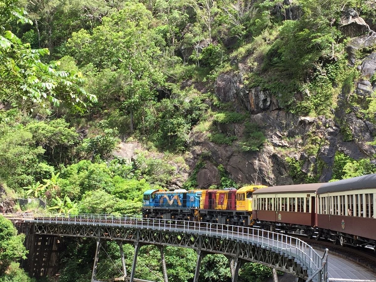 春休みに家族で参加しましたキュランダ列車に乗ってキュランダ村に行きました。キュランダ列車は冷房が効きにくく暑かったです。ツアーで席が限定されているようで、つめつめで苦しかったです。キュランダ村観光楽しかったです。アイスクリームも美味しかった!アーミーダックが一番楽しめました。青い蝶も3匹も見れました。インディージョーンズかディズニーのジャングルクルーズのようでした