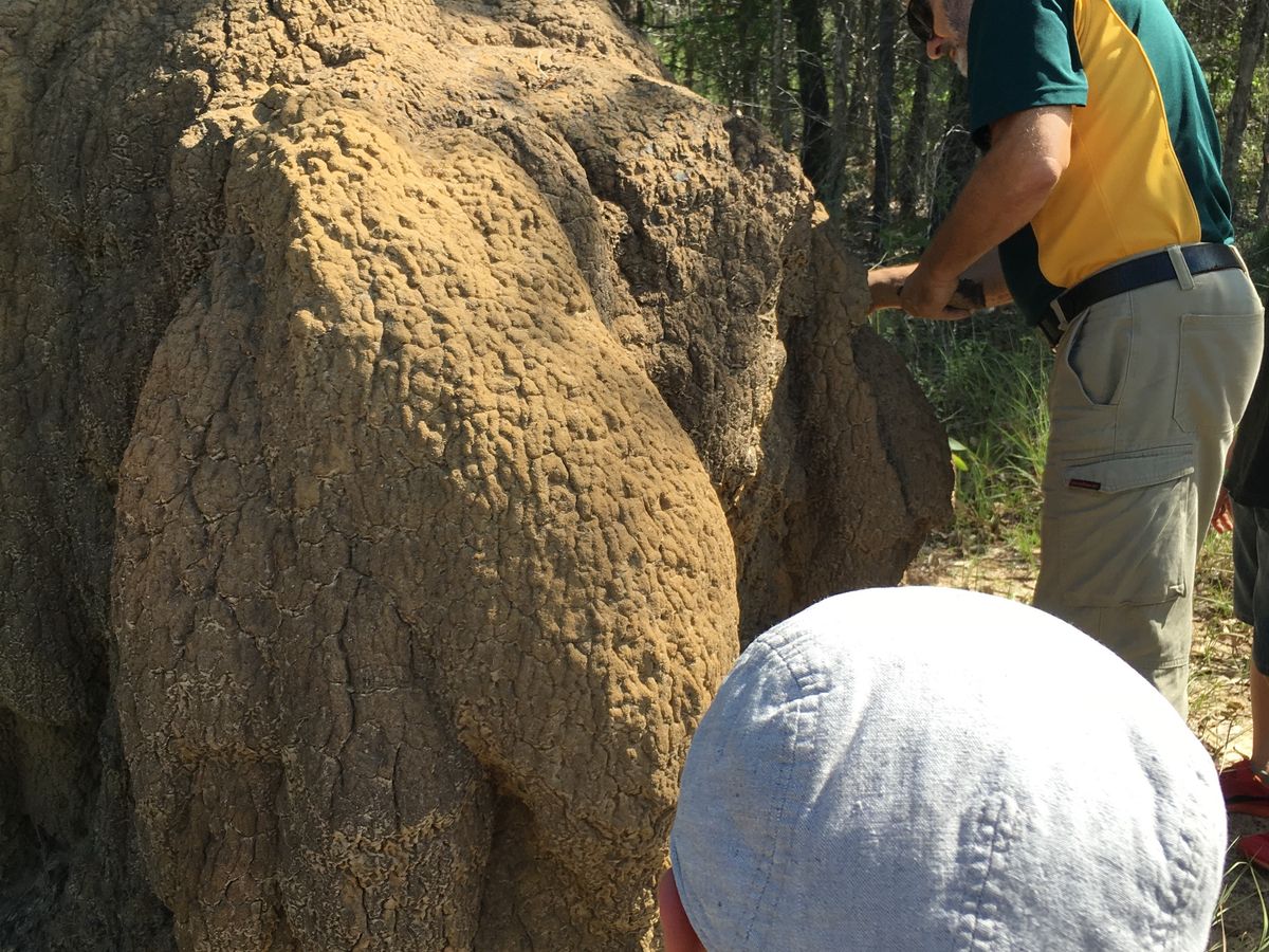 まずはバスの移動中にビンゴをやり、巨大アリ塚見学(シロアリの試食あり)→バスの車内から野生のカンガルー探し→ロックワラビーの餌付け体験→ピーナッツのお店にてフルーツの試食→カーテン・フィグ・ツリー(絞め殺しの木?)→カモノハシ探し→オージーBBQ(カンガルーとワニのお肉の試食あり)→熱帯雨林散策→星空観測→ホテルという行程でした。