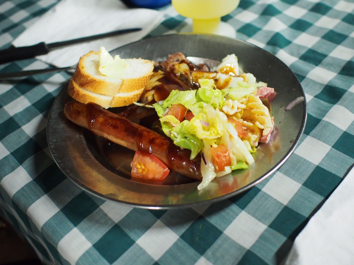 夕食のバーベキューもちょうど良い量で美味しくいただきました。テーブルの近くにはポッサムのエサ台が備えられていて、可愛いポッサムと食事をすることができました。