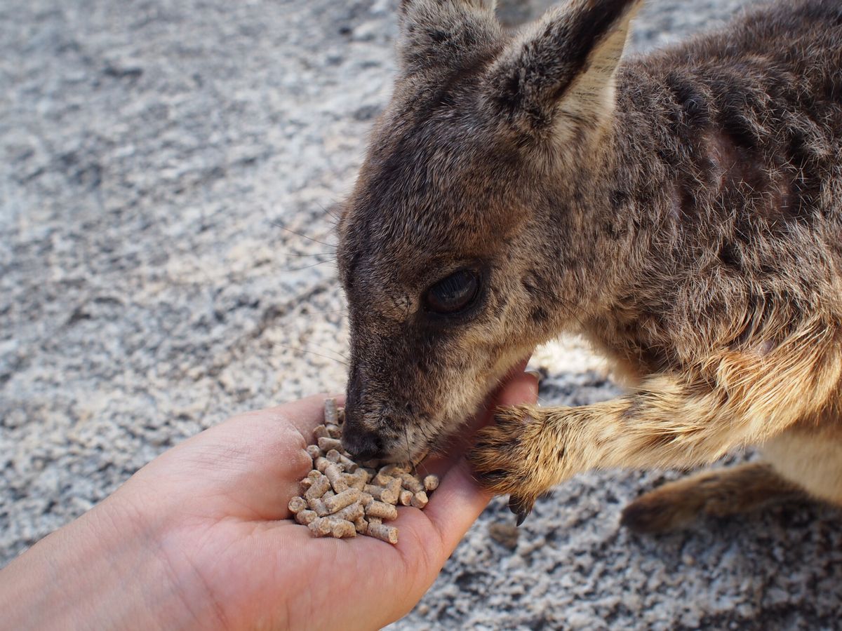 午後からは夜行性動物探検ツアーに合流しました。移動距離はかなり長いですが、道中もガイドさんが色々な動物を見つけて紹介してくれるので飽きません。子供たちは見つけた動物や植物のビンゴに夢中で、なんとか車にも酔わずに済みました。可愛いロックワラビーにも大喜びでした。