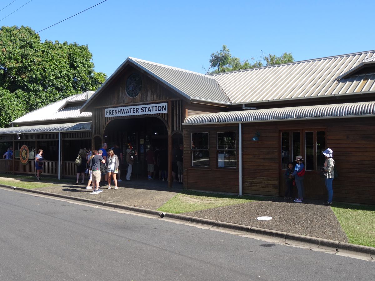 朝、宿泊先にバスが来てそこから各ホテルを回りツアーの参加者を拾いフレッシュウォーター駅からキュランダ高原列車に乗車しました。てっきりケアンズ駅から乗るものだと思っていたので、どうして!?と思ったのですが、フレッシュウォーター駅から乗ったほうが駅に入ってくる列車を撮影したり駅自体を見て回ることもできたので良かったです。