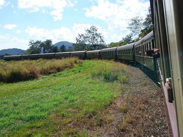 バスでキュランダへ向かい、列車は指定席でした。窓側の席になれませんでしたが、ガイドさんが「そろそろ、通路側の方と席替えしてくださーい」と声をかけて下さり、後半は窓側で写真もバッチリ撮れました!列車の乗車中に細かくこれからの動きを説明して下さり、スカイレールに自身で乗る時も、安心でした。