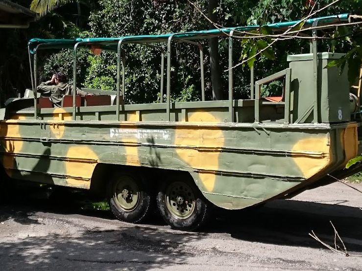 アーミーダックで熱帯雨林を説明を聞きながら陸から川の中まで車に乗って突き進む。ガタガタ揺れながらこれは危険な植物ですと、一見普通のツルにリックサックを叩きつけるとリックサックがぶら下がってました。子供達だけでなく親も初めての体験ばかりでとても楽しかったです。スカイレールから見る景色もグリーン島まで見れました。列車からの景色もテレビで見たことあるなど感動しました。