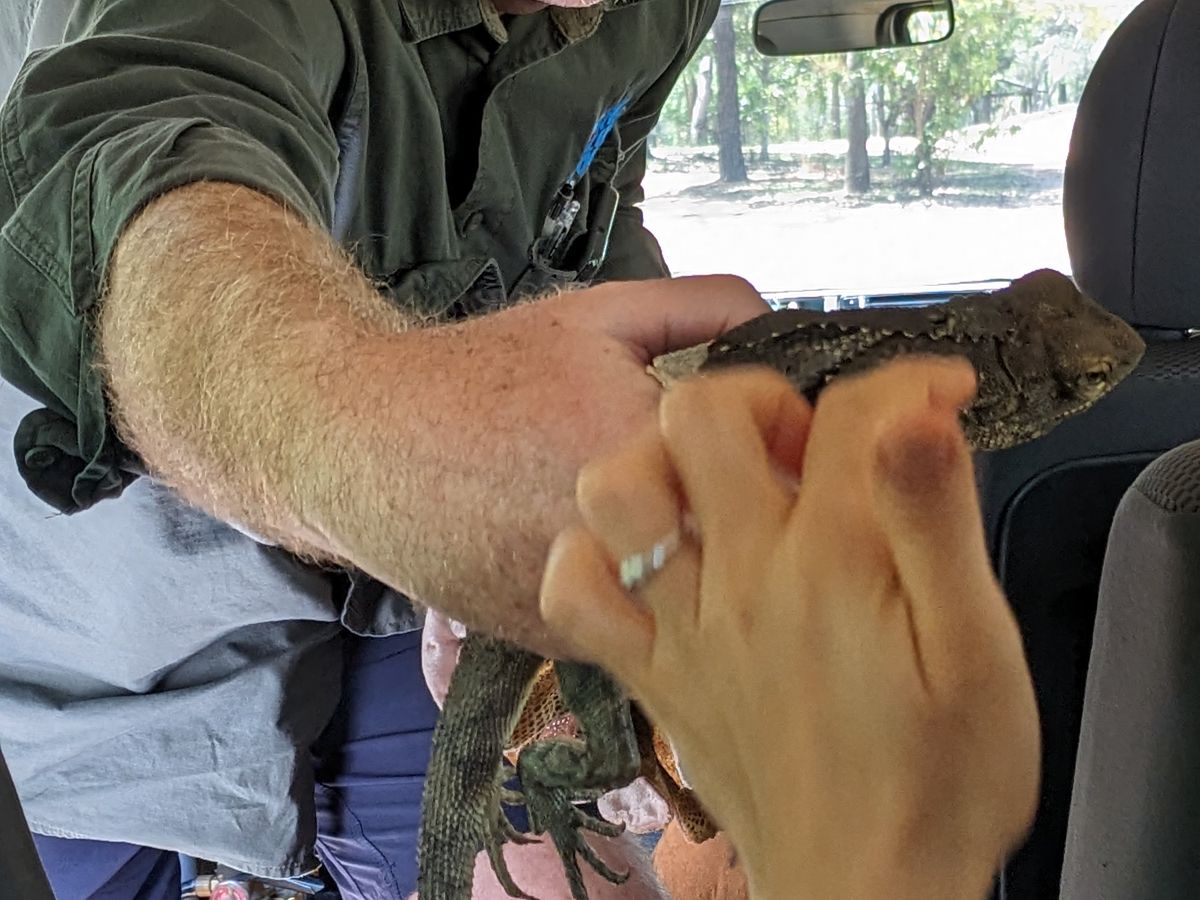 途中、シェーンさんが、エリマキトカゲを捕まえてくれました、これは本当に運が良かったです!