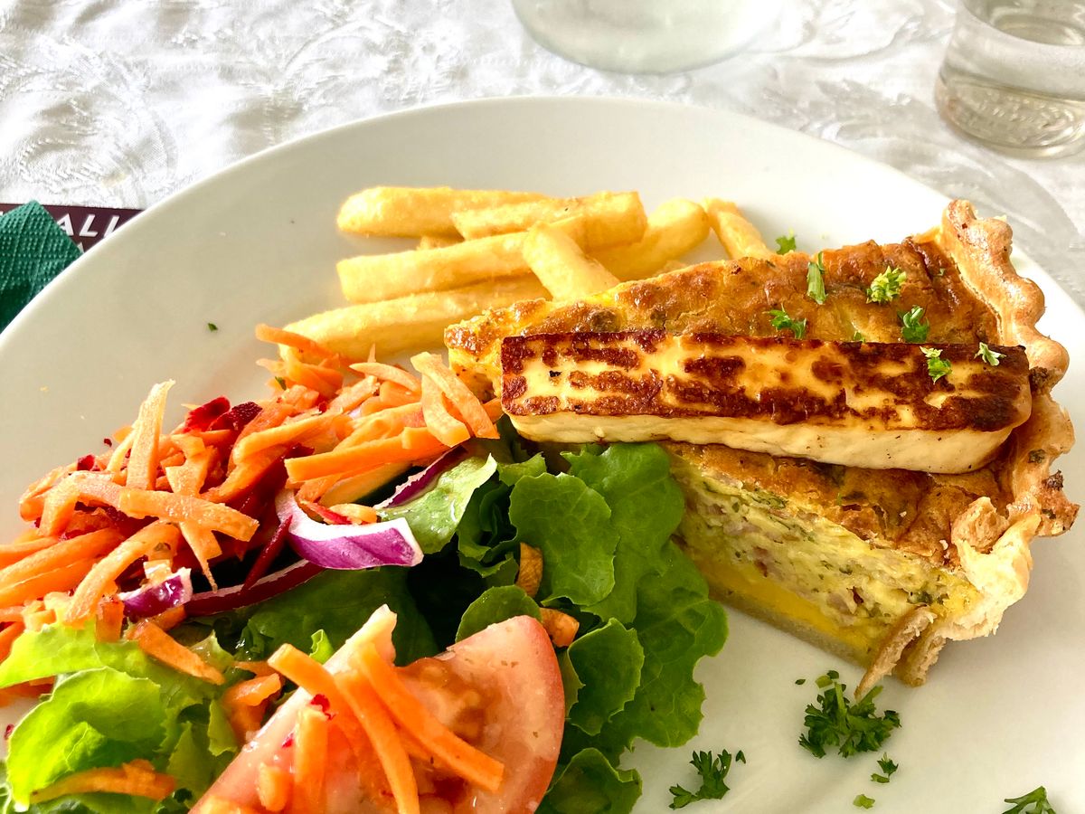 ランチはいくつかの種類から選べました。キッシュと牛肉のカツをいただき、ボリューム満点かつ美味しいで大満足!