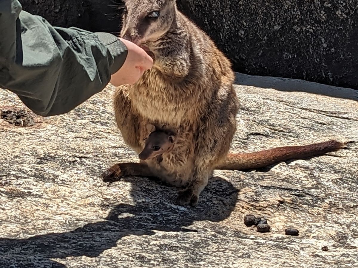 グラニット渓谷ではお腹に赤ちゃんをいれているお母さんワラビーにも遭遇したのですね。
