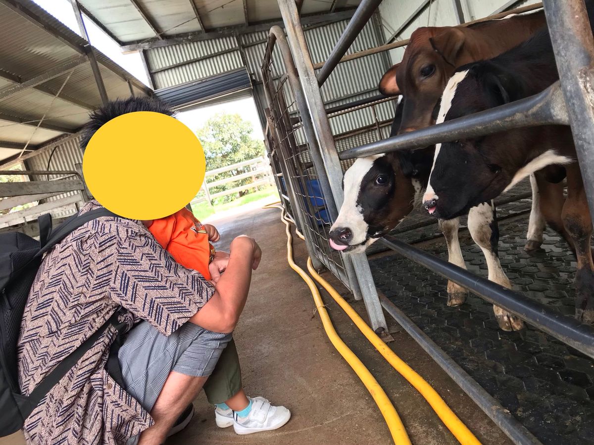 一歳の子供も楽しんでいました。子牛、野生のワラビー、珍しい鳥、ハムスターなどの可愛い動物からヘビやシェーンさんがつかまえたエリマキトカゲまで!たくさんの動物と触れ合う事が出来て、しっかり動物好きになれたようです。
