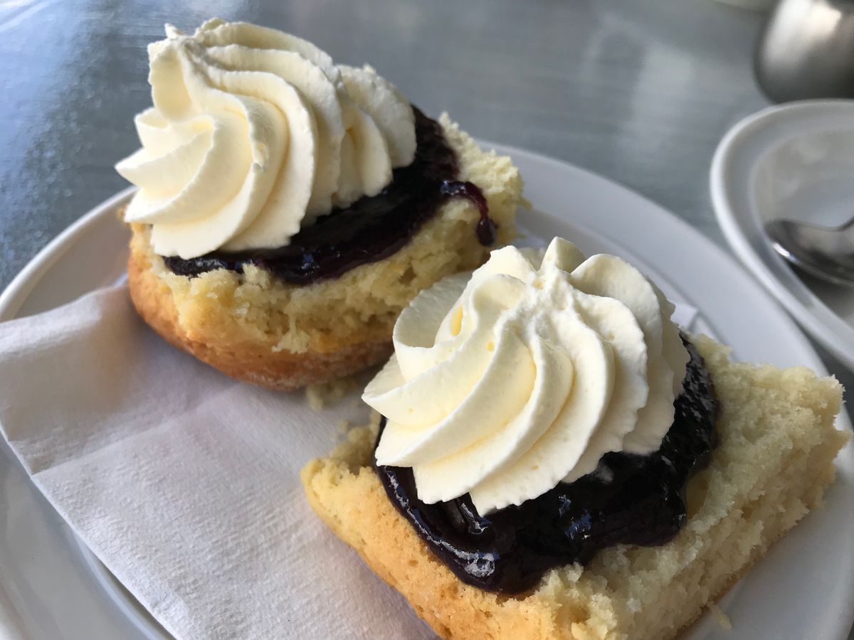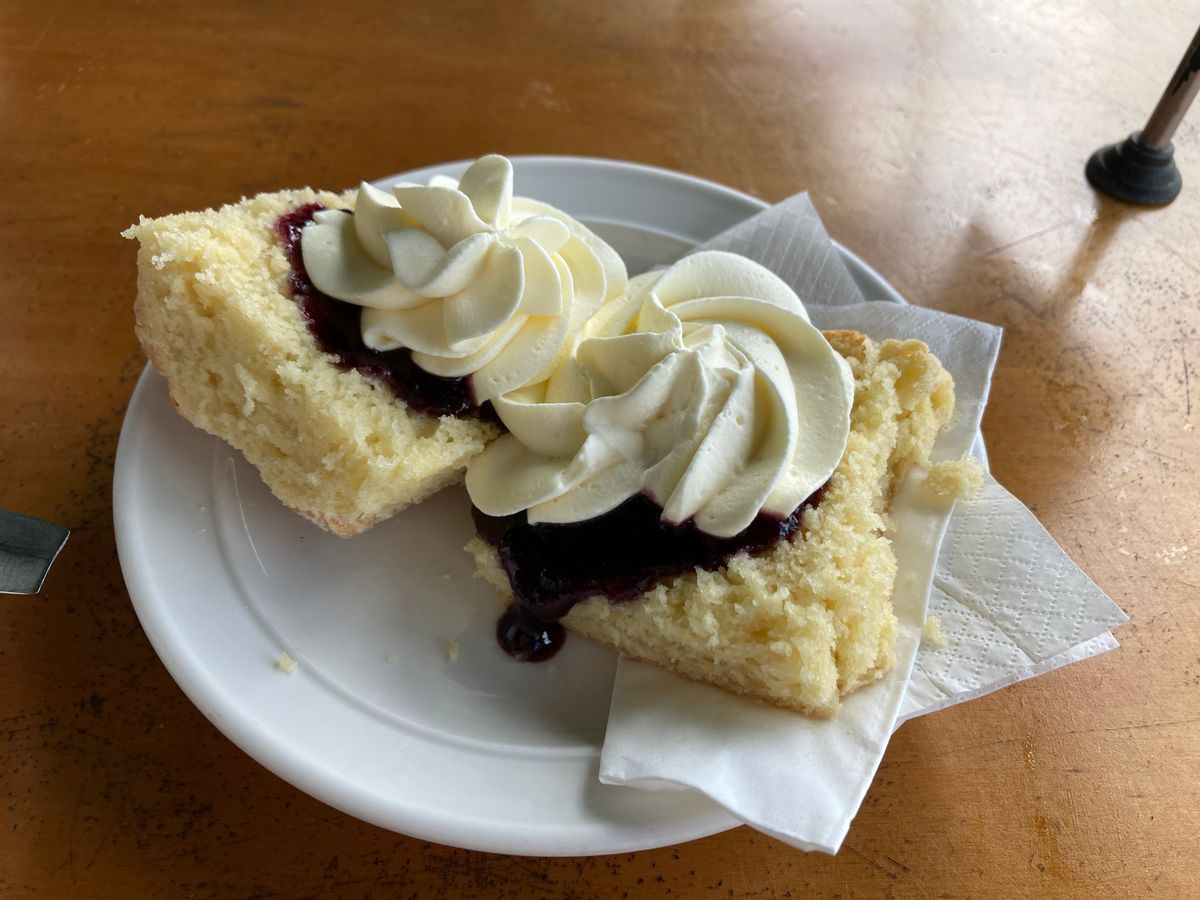 クリームたっぷりで一見甘そうに見えるのですが、クリームはとても軽くふわふわしていて、ジャムとの組み合わせも抜群で