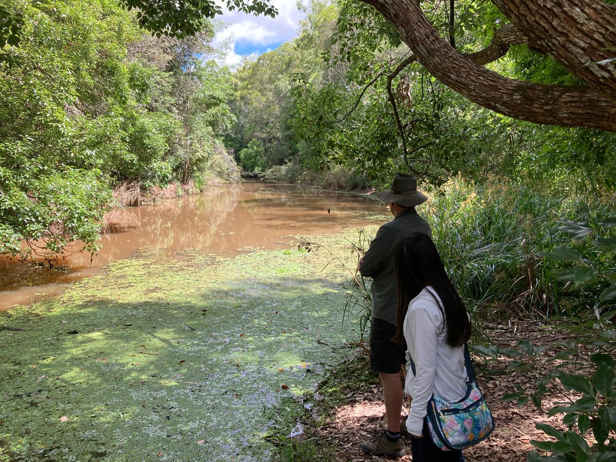 そのあと、少し時間があるとのことでボーナスタイムへ。近くにカモノハシが見れる川があると聞きそちらへお邪魔しました。結果、見つけることは叶いませんでしたが、カモノハシを探すプロフェッショナルなシェーンさんの姿にただただブラボー。動物を探す際のコツと楽しみ方について教えていただきました。