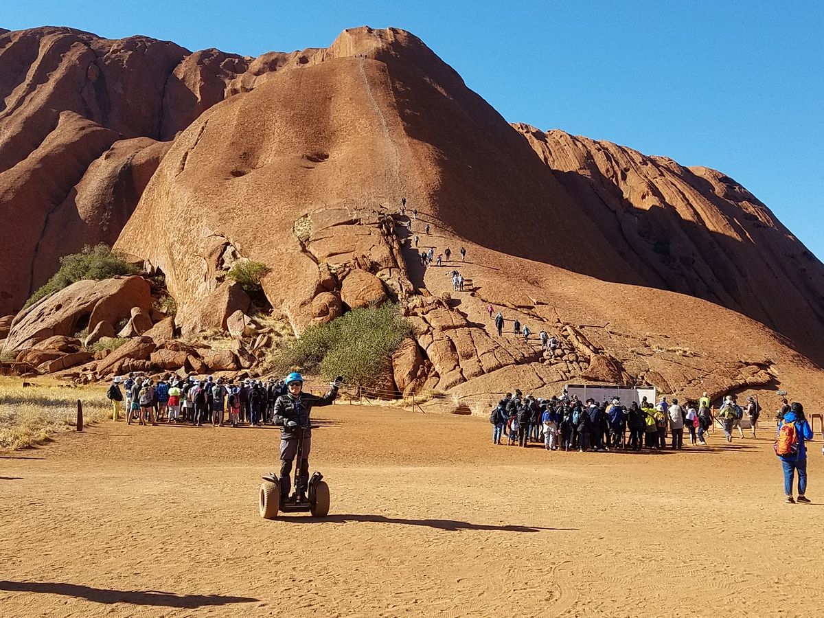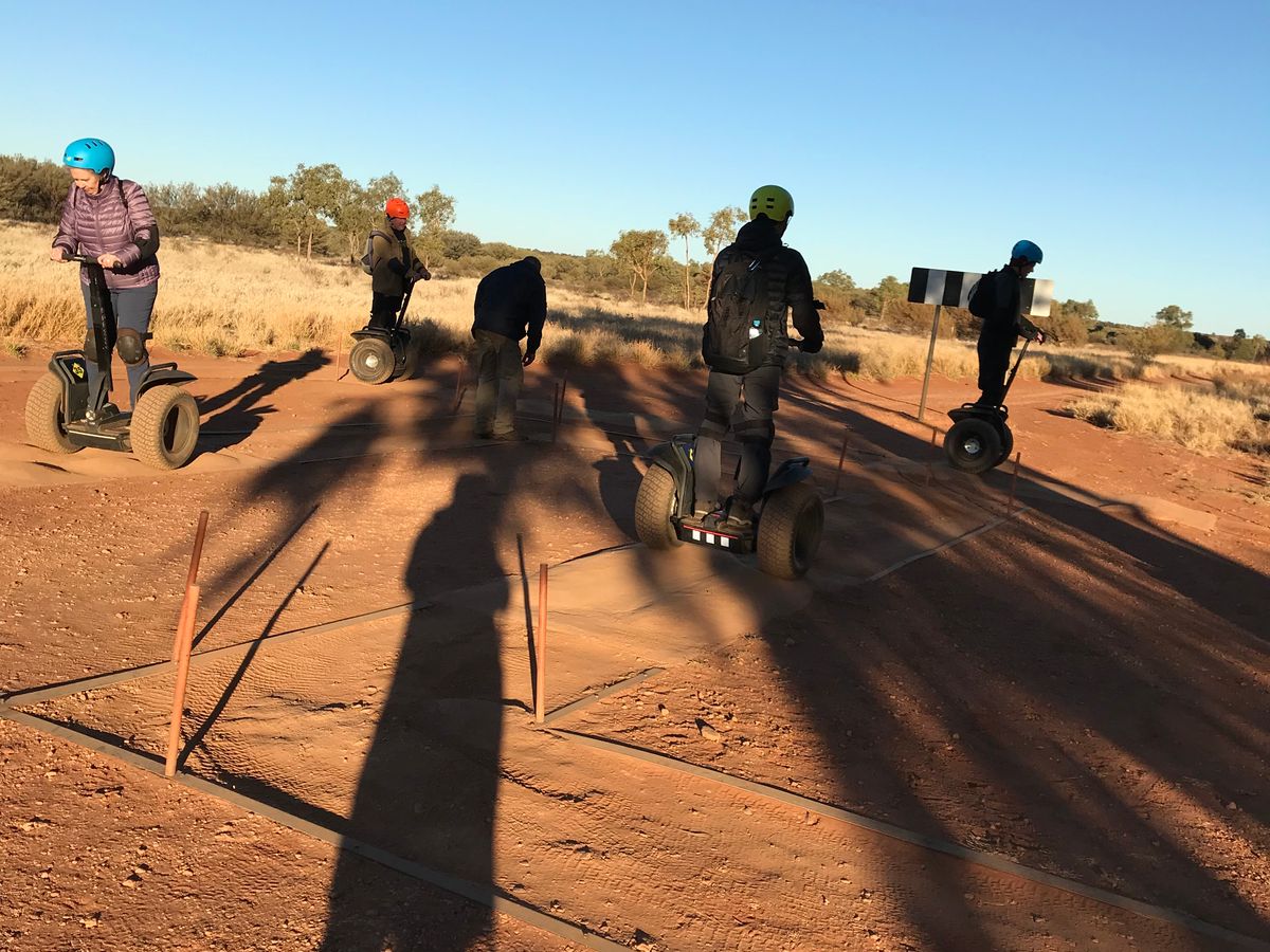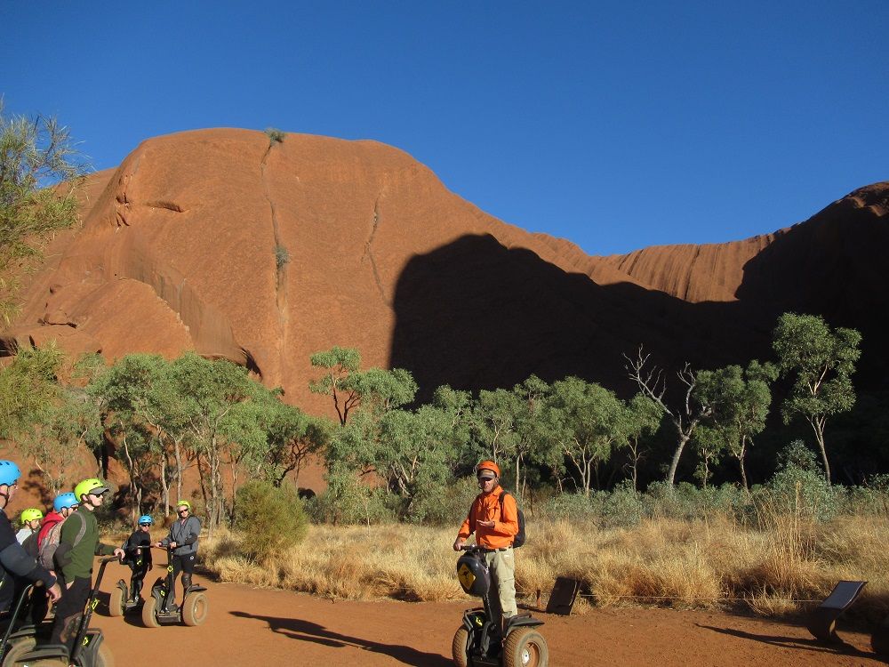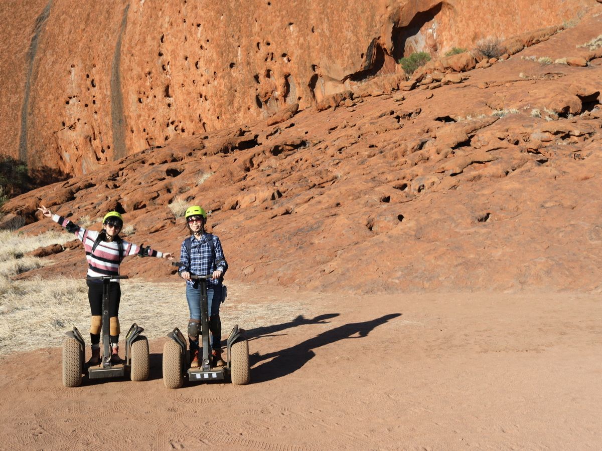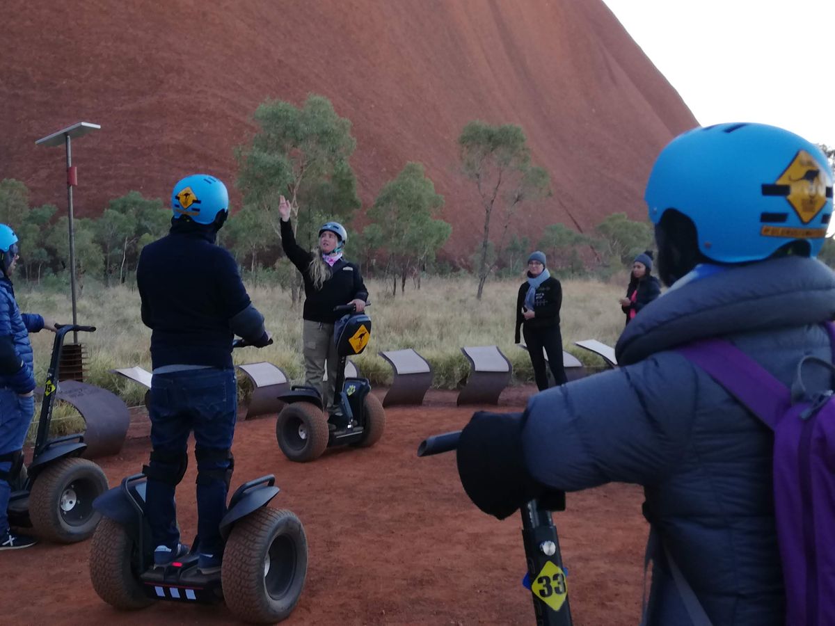 セグウェイの乗り方はとても簡単で直感的なので心配いりません。ガイドの方は知識が豊富で細かい気配りも素晴らしかったです(英語です)。歩くより全然ラクにウルルの観光ポイントを見て回れるのでオススメです。最後にウルルを眺めながら飲んだシャンパンは最高でした。