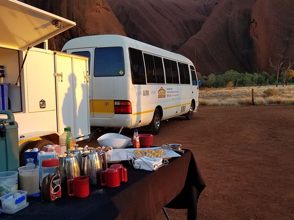 Thanks for your great review, I'm glad to hear you enjoyed breakfast and the sunrise view from Uluru, it really is special isn't it. I'm sorry to hear that you had a bit of trouble with your audio guide cable being disconnected - I'll remind our guides to make sure that it is working well for their groups as they travel around Uluru.