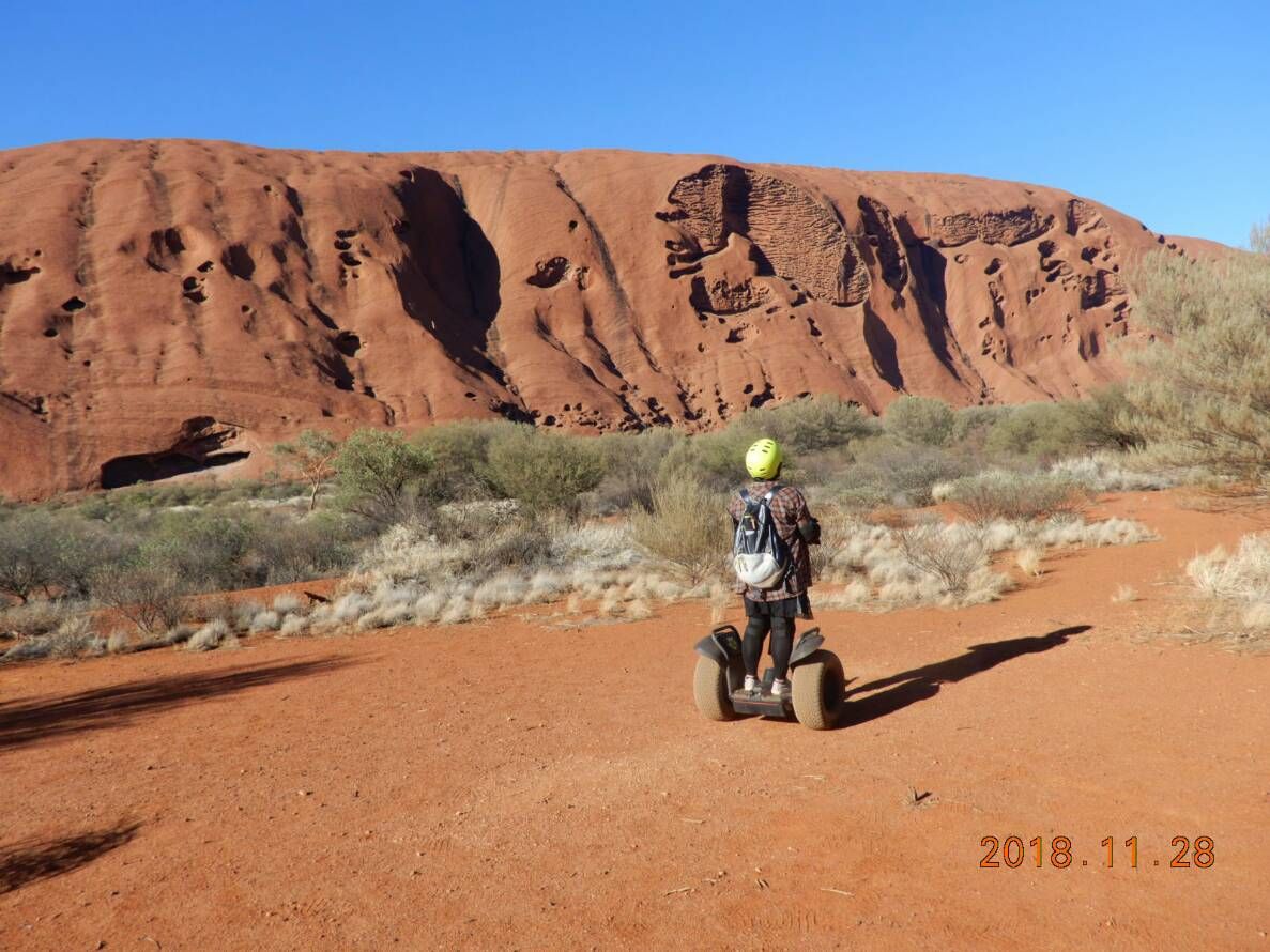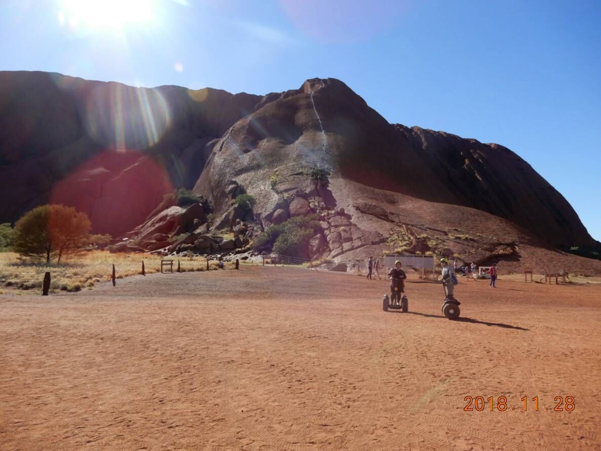 前日もサンライズ麓ツアーに参加したのですが、車中観光しながら要所要所で下車という形でした。セグウェイは徒歩での散策エリア内に入れるので、車では近づけない林の中や、ウルルを間近に見ることが出来て、全く違った印象を持ちました。