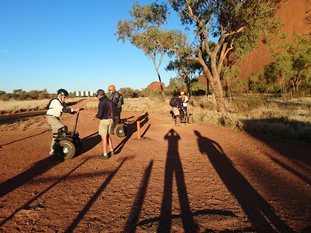 サンライズツアーに参加しました。宿泊しているホテルまでバスで迎えに来てもらえます。ツアーガイドの方は、とても陽気でおもしろい方で、楽しく過ごせました。エアーズロックに着くと、まず軽い朝食と飲み物が用意され、サンライズを鑑賞します。ハエの多さが少し気になりましたが、この時の景色は本当に素晴らしかったです。その後、インストラクターからセグウェイの乗り方についての講習をうけます。非常に丁寧に教えてもらえるので、英語がほとんどわからなくても問題ないです。12月に参加したので、非常に暑かったのですが、セグウェイで快適にエアーズロックを一周することができました。エアーズロックを1周するには、大変おすすめのツアーです。