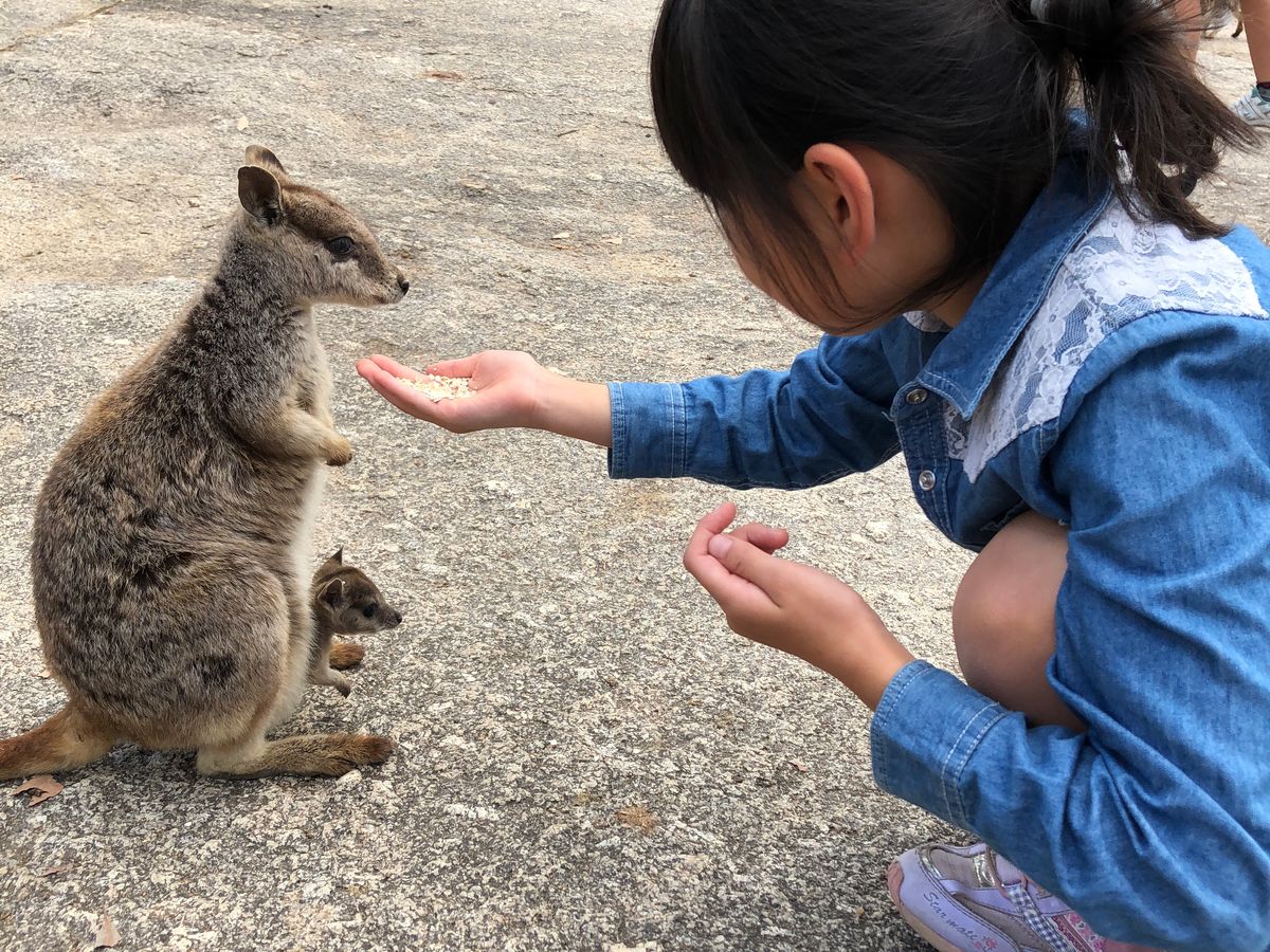 10才の娘が一番楽しみにしていた、ロックワラビーの餌やり。