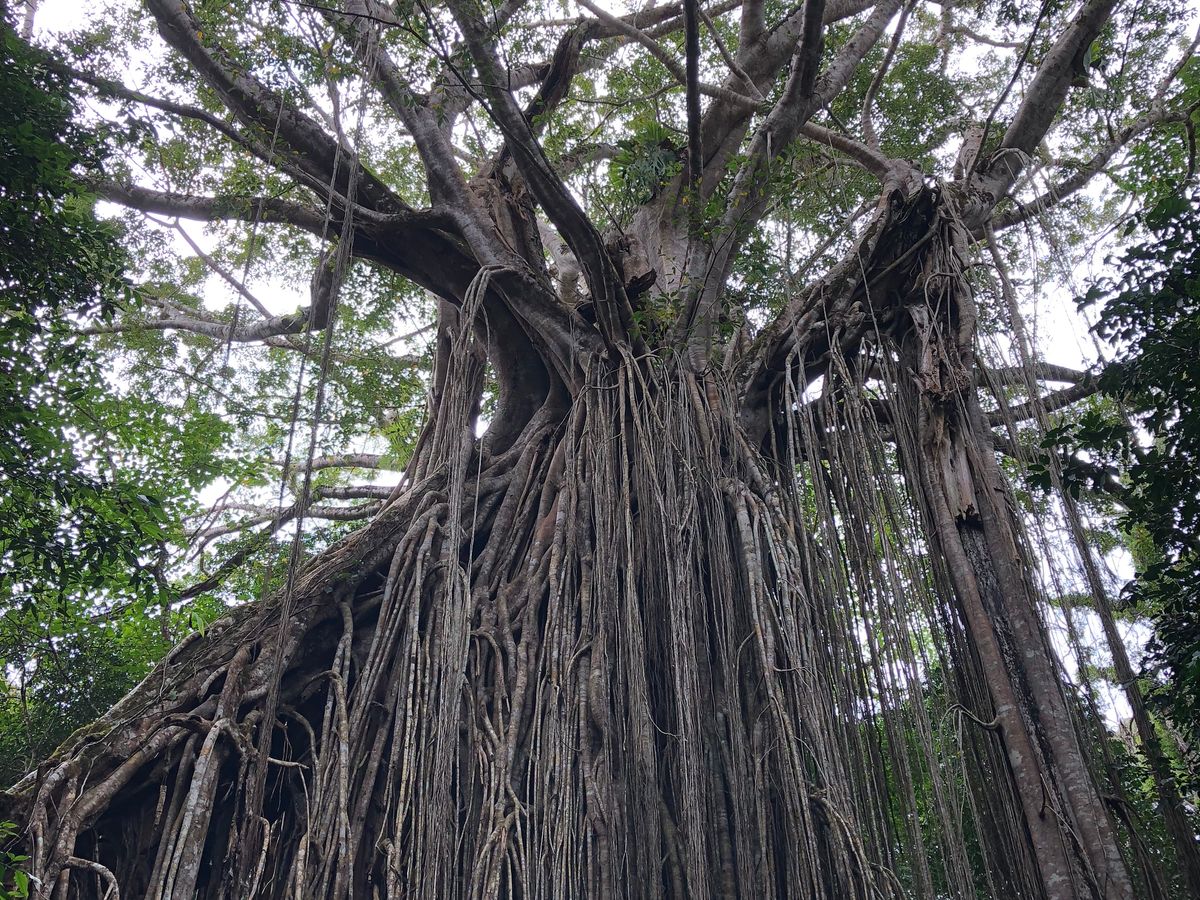 印象深かったところは、カーテン・フィグ・ツリー(絞め殺しのイチジク)です。周りの森静かで緑が美しく、空気も澄んだ感じ。その中にあるイチジクの木はすごい存在感でした。見上げると緑と木漏れ日のきれいなこと。訪ねて良かったなと幸せな気持ちいっぱいでした。