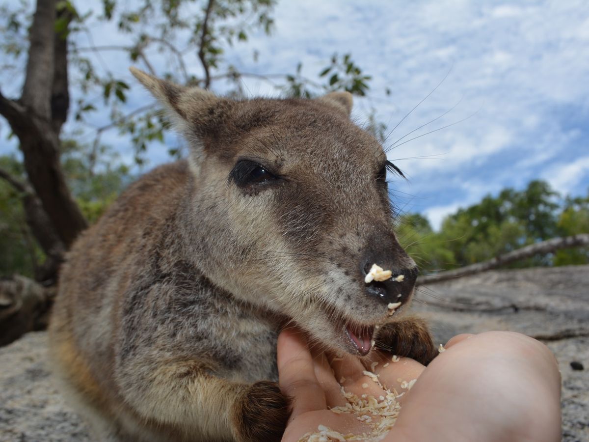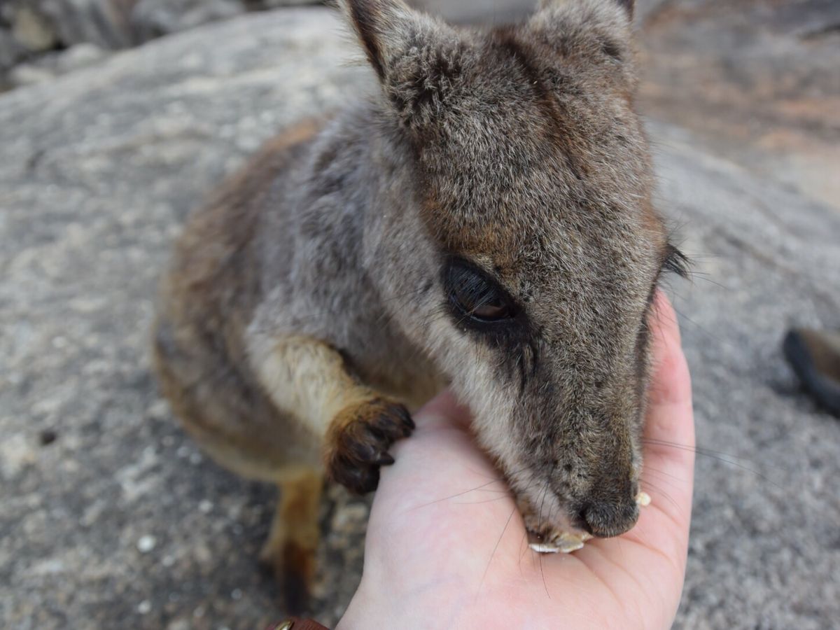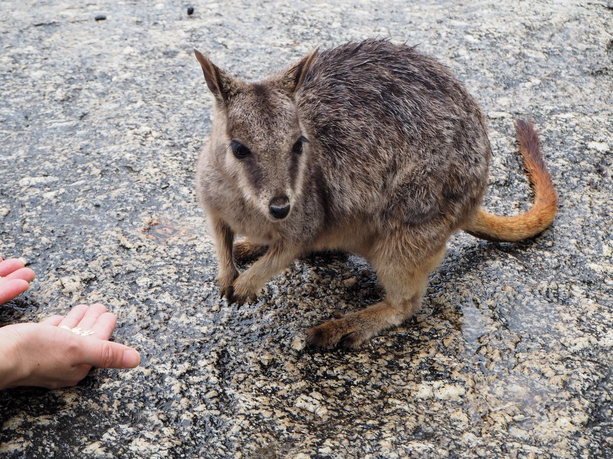 ロックワラビーへの餌付けですが、このように野生のワラビー等の動物に餌付けを出来る場所はオーストラリア国内でも