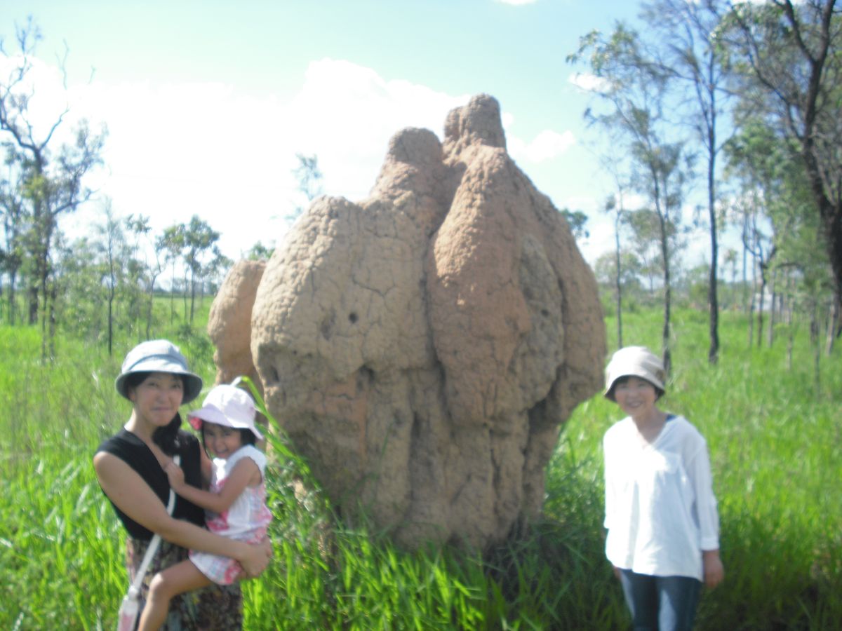 それからピーナッツと珍しいフルーツの試食、広大な自然のままのCairnsなのか、道中にそびえ立つ、アリ塚、この不思議なアリの作った造形物になぜか私達夫婦は異様に興奮し、車を停めてまで観察、写真を撮りました。