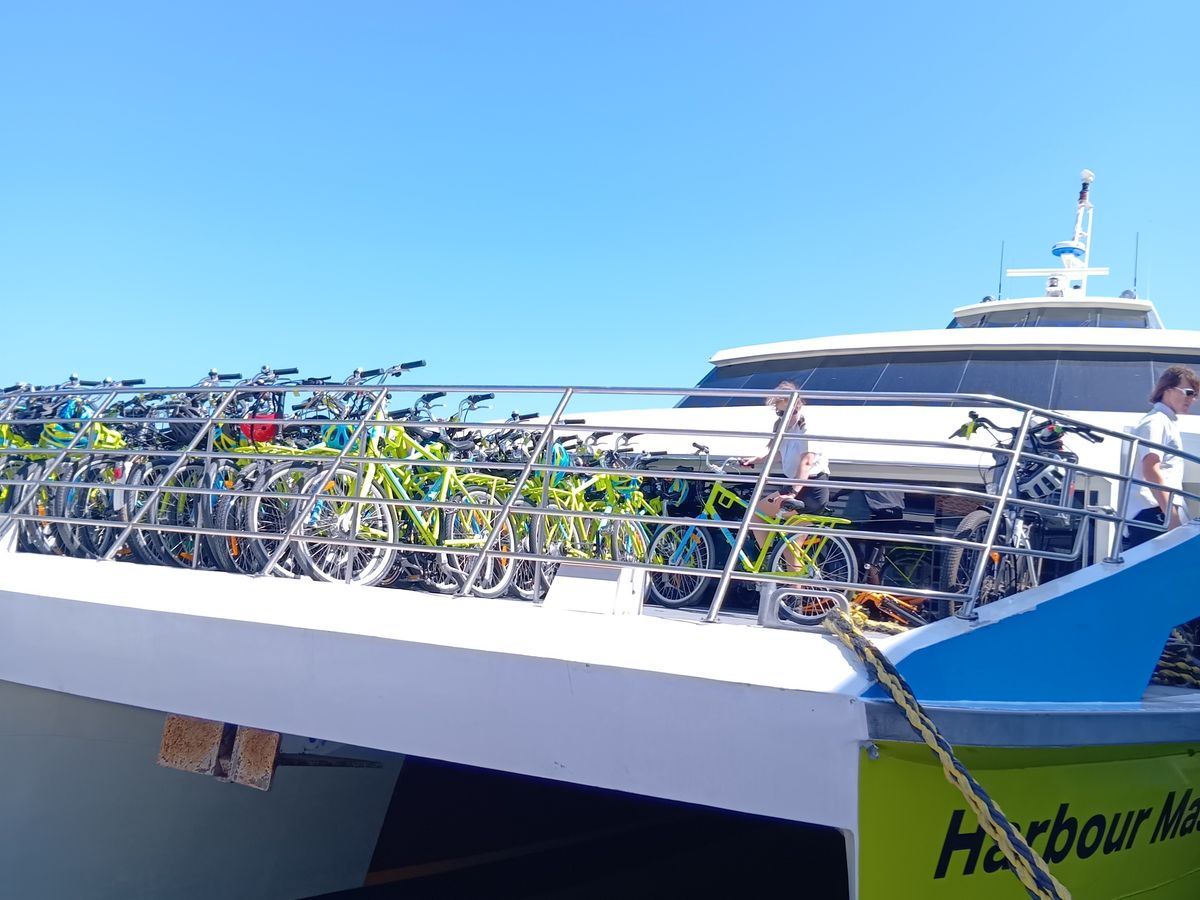 真夏のサイクリングはしんどかったです、、、(当日最高気温38℃)快晴では無かったのでなんとか頑張れましたが、サイクリングコースは日陰にならない場所も多いので、熱中症にならないか心配しながら地味なアップダウンが多い道を内陸の灯台まで行きました。ここまで頑張ったものの、クォッカを1番見たのは目抜通りの人が多い場所付近でした笑 警戒心はなく近くで写真を撮ってもこわがっていなさそうでした。ツアーのバスは時間通りに指定場所まで来てくれ、帰りも同じ場所で下ろしてくれます。フェリー乗場の受付では催行会社からメールで送られてくるバウチャーを受付で見せればOKです。自転車は受付横の貸出場で同様にバウチャーを見せて借り、フェリー置き場まで引っ張って行けば乗組員さんが船上に上げてくれます。サイクリングは非日常的でとても楽しかったですが、それにしても本当に暑かったので、真夏の島内観光はバス、それ以外はサイクリングというのも良いかと思います!