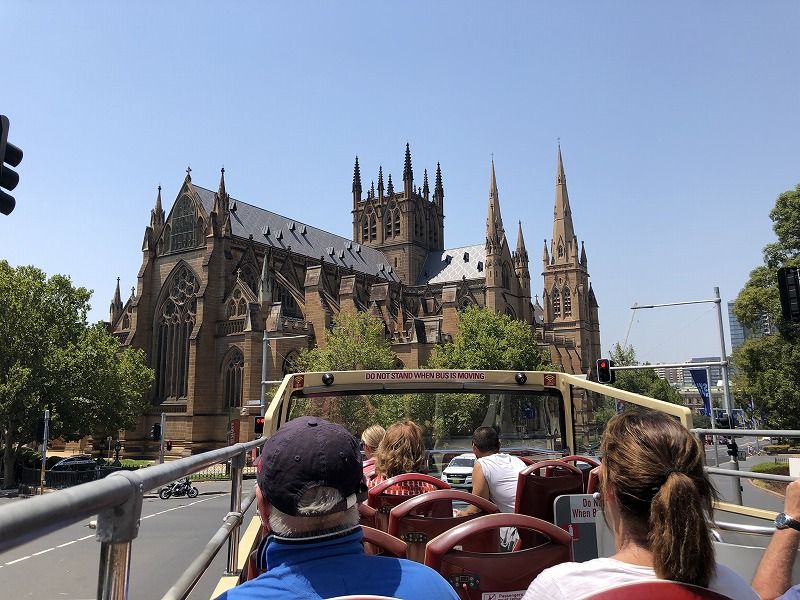 赤のコースサーキュラキーから乗り、教会を見て、そこから青のコースに乗り、ボンダイビーチまで行き、下車しました。青のコース1周してから、又、赤のコースに戻り、赤のコースを一周しました。この日はほぼ、バスに乗っていて、両方のコースを回れてしまいました。