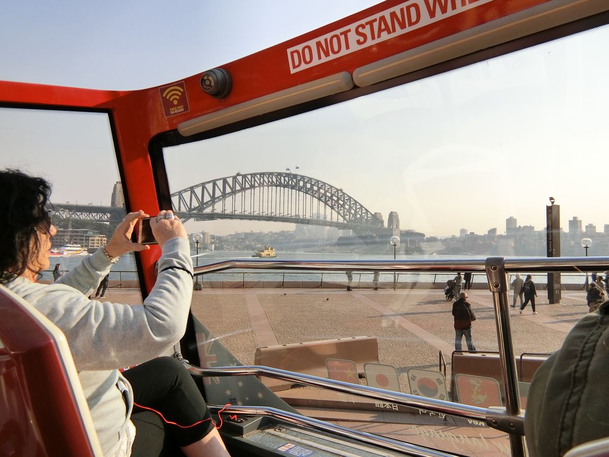 私がシドニーに着いた2週間前にライトレール(大型の市電)が開通していてビッグバス(市内乗り降り自由バス)の予約は必要なかったかと思いましたがそんなことはなく日本語の音声ガイドはとても便利で良かったです。ハーバー・ブリッジに近づくと「映画クロコダイル・ダンディで有名になる前のポール・ホーガンもこの橋の塗装の仕事をしていました」とか流れます。BGMもオーストラリア出身のロックバンド AC/DC が使われたりしていて楽しかったです。