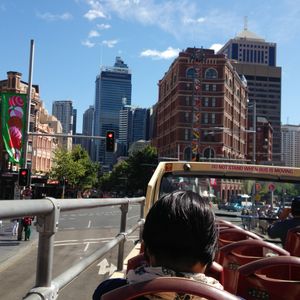 シドニーには飛行機の乗り換えのため一泊二日の短い時間での滞在でした。全く知らない街を大雑把に知るためにはこういった市内観光バスは最適でしょう。市内観光バスには2系統あり、各々Red lineとBlue lineという名前が付いているようですが、どちらもバスの色は同じです。赤いバスや青いバスが走っているわけではありません。ぼーっと待っているとバス停で延々待ちぼうけになります。ご注意を!バスのフロントの電光掲示板をよく見る必要があります。ただし、乗ってしまえばあとは最高!決して広くない市内の通りを街路樹ギリギリで通過するスリルはまるでテーマパークのコースターといっても過言ではありません。このバスは2系統両方乗るのが必須です。寒くても暑くても2階のデッキ席に。