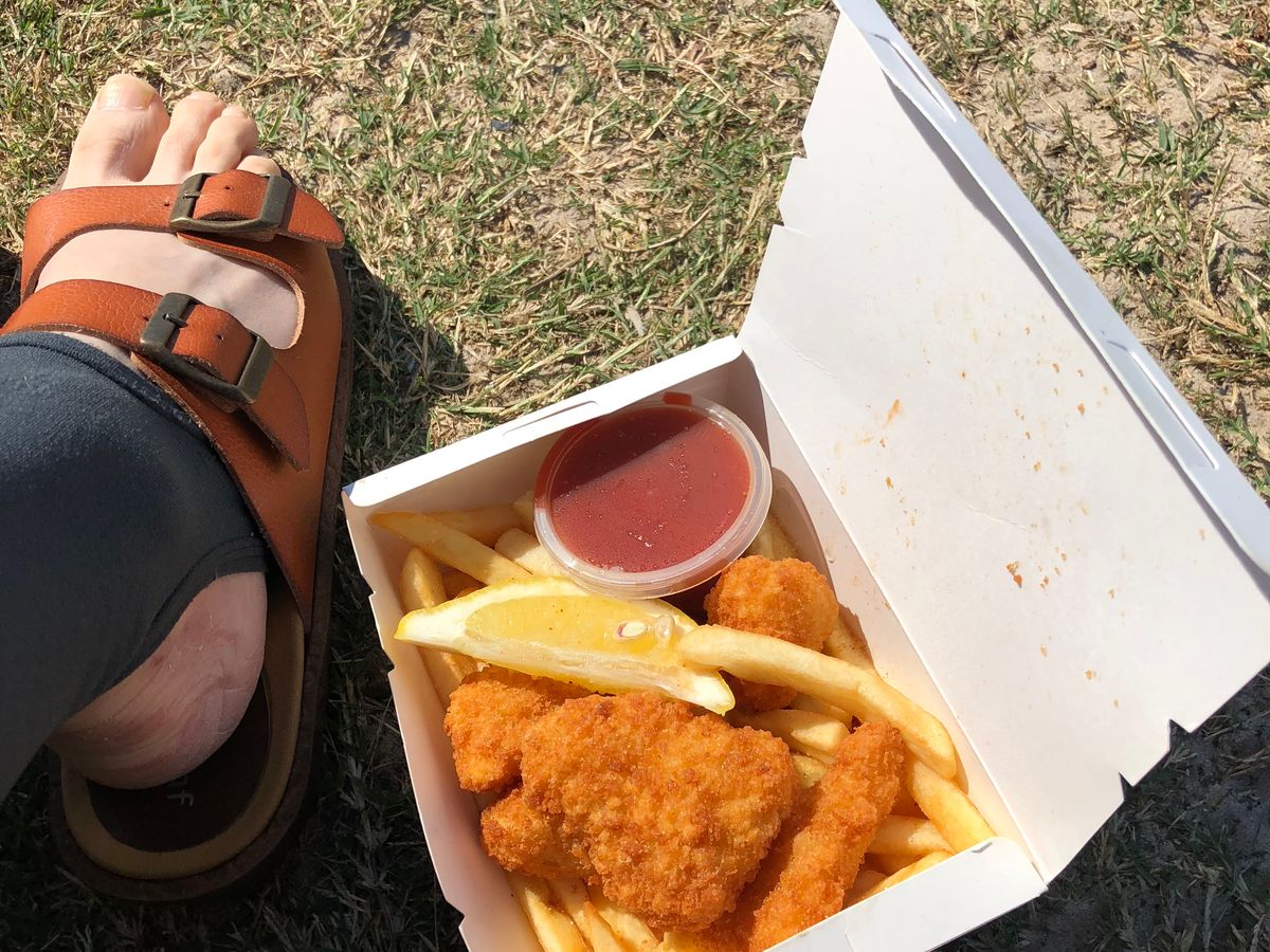 その後も歩き回って集合時間まで少しあったのでフィッシュアンドチップスをテイクアウトしてビーチで海を眺めながらいただきました。