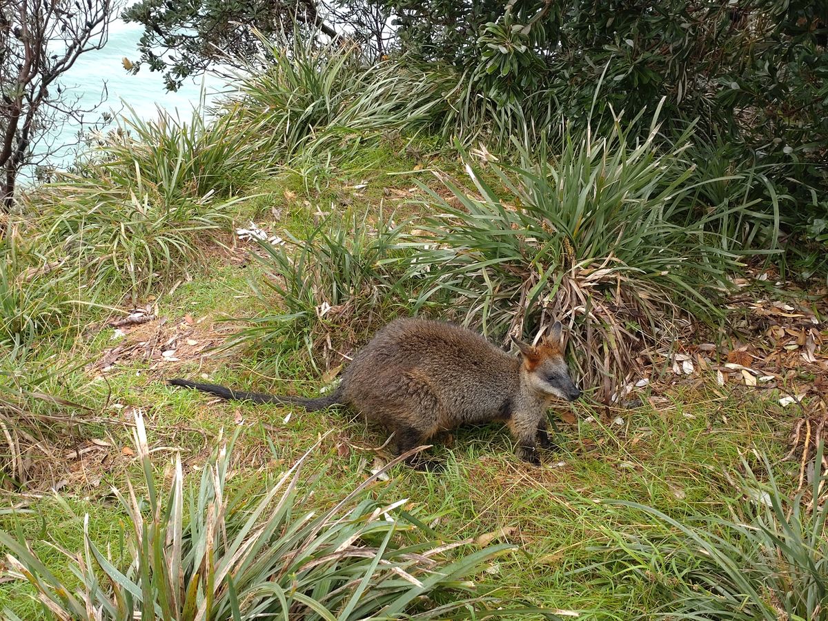 灯台から最東端の看板がある所までの遊歩道でワラビーに会え、海を見るとクジラが何頭も泳いでいて広大な海を感じることができました。雨でなければもっと綺麗な景色を楽しめたと思います。