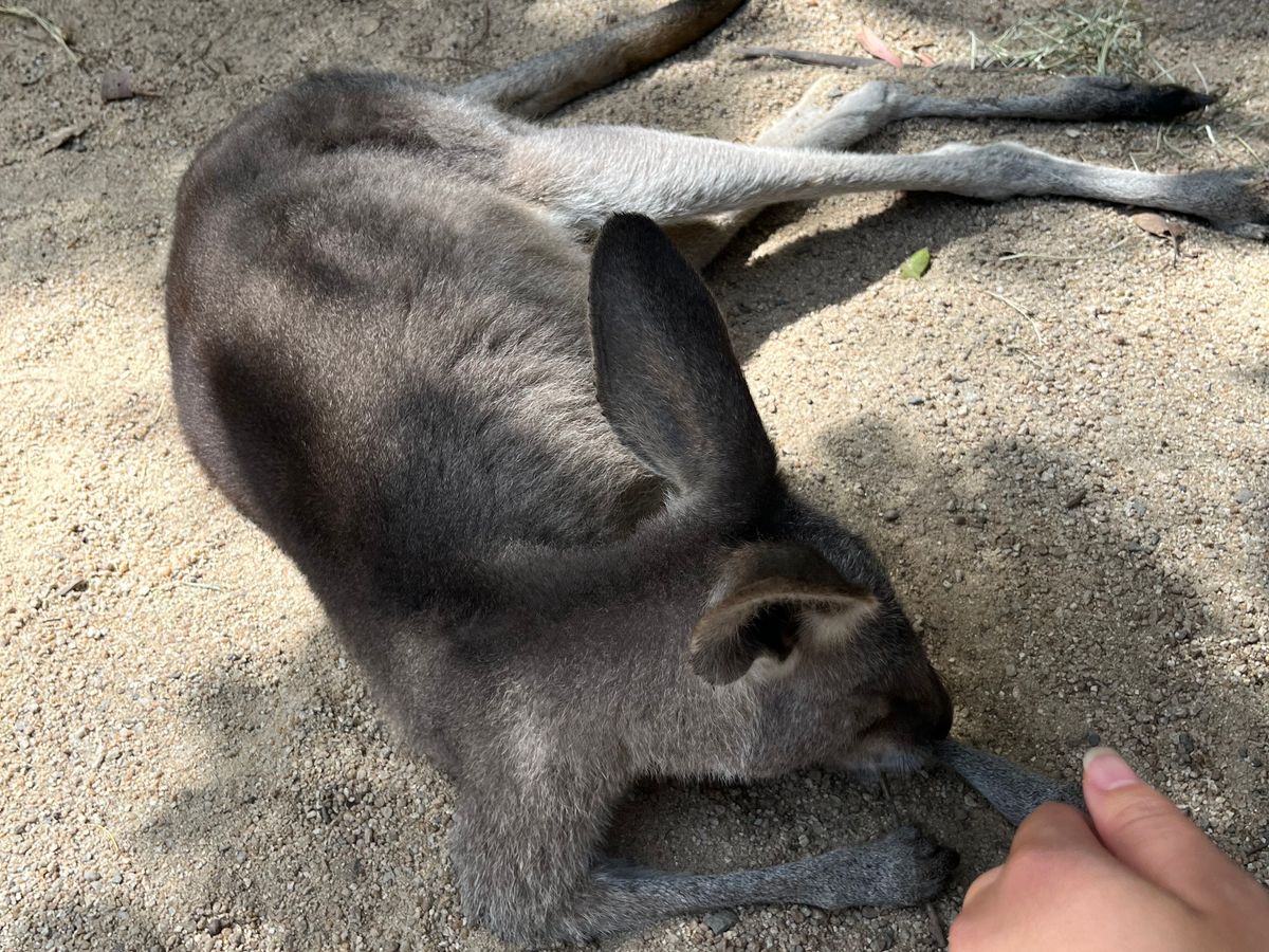 頭を撫でると、気持ちよさそうにしてたカンガルー、日本にはあまりない体験ができました。