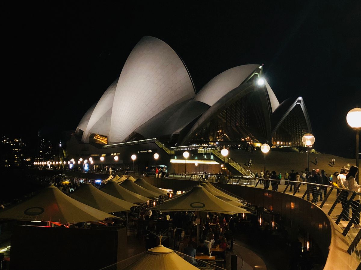 船で夜のオペラ、ハーバーブリッジも