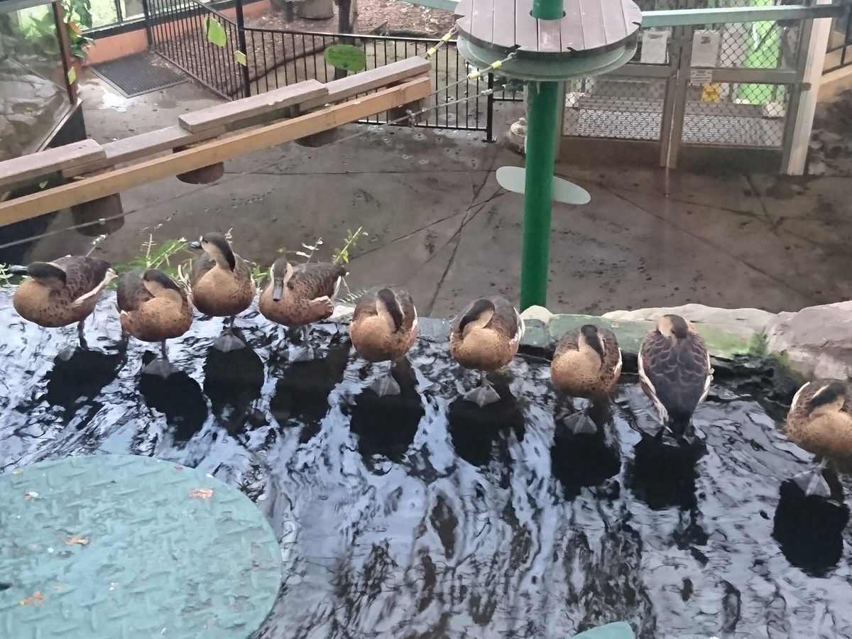 ゆいか様、この度は当園にお越しいただき誠にありがとうございました。嬉しいコメントも残していただき感激です!カモの家族写真もかわいいですね!2羽の両親以外は全員一緒に生まれた兄弟たちで、いつも一家で一緒に行動しています(笑)。子供たちがまだ小さいヒナの時は、近づいただけでお父さんカモに威嚇され皆さんドキドキしていましたが、今やすっかり貫禄のついた落ち着いたお父さん&結束の固い仲良し家族です。お客様が撮影していただいた写真はどれもステキな写真が多いので、もしよろしければ当園のフェイスブックページにも投稿していただけるとさらに嬉しいです!