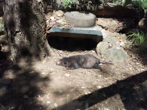 カモノハシ館では幻の?カモノハシがスイスイ泳いでいて感激でした。隅々まで見て回ると大きいトカゲのお食事タイムに遭遇、生の?エサがちょっとエグかったけど食物連鎖ですね・・・