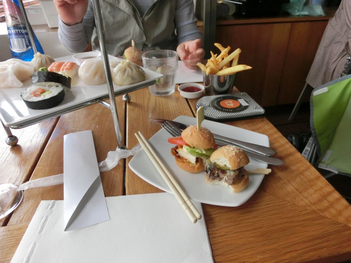 そろそろ昼食時刻ということで、オペラキッチンにて、テイスティングプレートを注文。三段重ねのプレートに準備された料理は、他の人とカモメの注目するところでした。