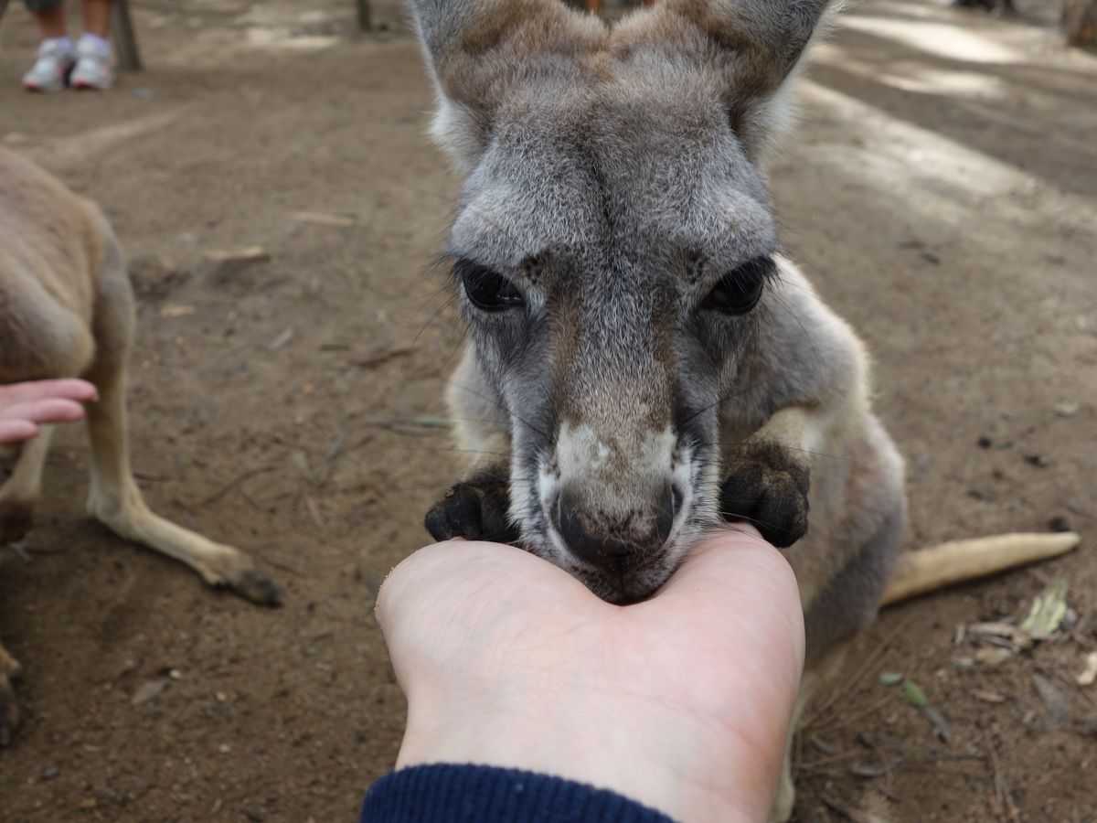 ワラビ―やカンガルーは餌が売っていて、あげられます。さわれます。とってもかわいいです。
