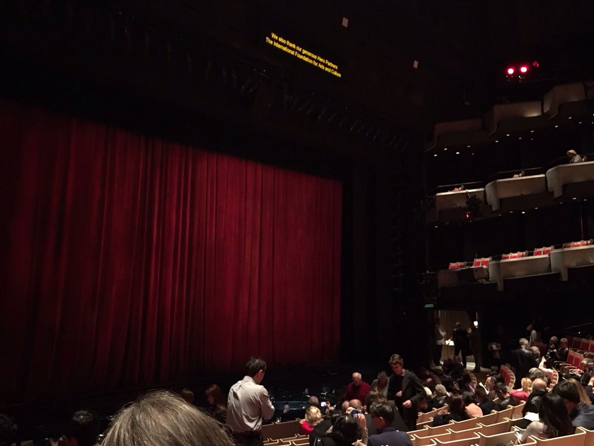 サーキュラーキー駅から10分ほど歩きオペラハウスに到着しました。18時頃でしたが、冬場だったので日が沈んでおり、オペラハウスとハーバーブリッジのライトアップがとても綺麗でした。オペラハウスに入る前に、オペラの時間が3時間弱ということだったので、オペラキッチンというところで事前に食事を済ませておきました。私たちはカフェでの軽食のみでしたが、レストランもあるので、そこで食事を済ませることも可能です。軽食を済ませた後、18時50分くらいに、オペラハウスのチケットブースでバウチャーとチケットを交換しました。チケットとの交換は、チケットブース(office box)がアルファベット順に区切られているので、予約した名前の頭文字のあるのアルファベットのブースにバウチャーを持っていけば簡単に交換できます。チケット交換後は、チケットブース横の階段を登り、劇場内へ向かいます。そこでドリンクや軽食、パンフレットを購入できます。ちなみに会場はオペラハウスの1番大きい会場ではなく、Joan Sutherland theatre とい会場でした。私たちはB席での予約でしたが、席は前から11番目で端から3、4番面でした。舞台全体が非常に見やすく、舞台下のオーケストラもみることができました。