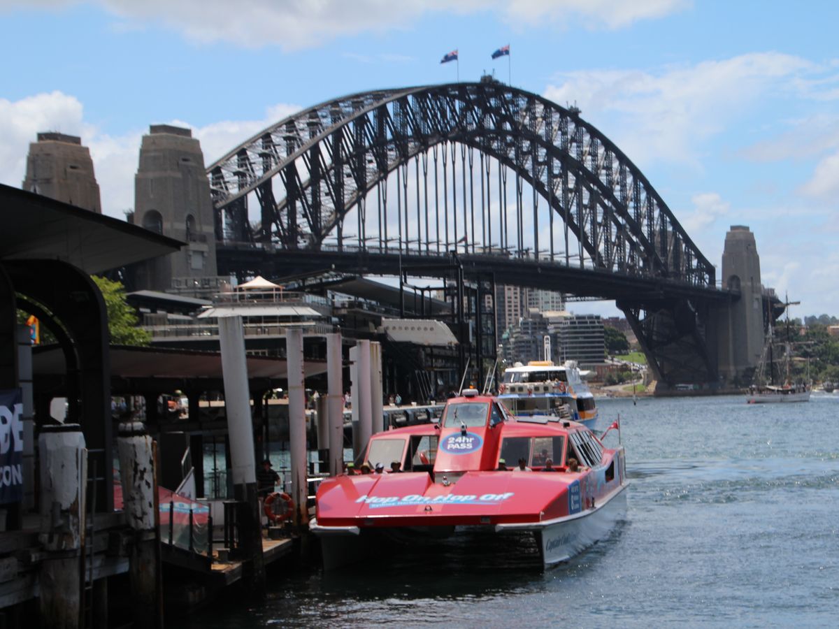 丘を下って来ると船着き場に戻れます。帰りのフェリーは 出発したサーキュラーキーの6番桟橋に着く前に もう少し奥の港に寄ります。ここも にぎやかな所なのでここで降りても良いのですが、そのまま乗っているとシドニー湾一周観光ができます。ですから帰りは45分位かかったと思います。オペラハウスなども海から観ることができます。