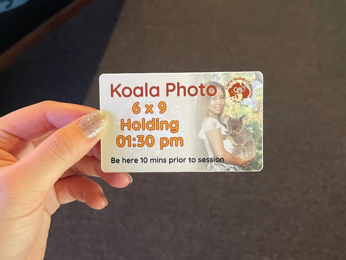 入園券+フォトサービスを購入することで、コアラの抱っこと写真撮影が可能です。入園券は人数分必要ですが、フォトサービスは要するに抱っこしたい回数分購入すればよいです。必ずしも人数分必要ではないようなので、我が家は 4 人に対して 3 フォトサービスを購入し、9 歳の娘ソロ、6 歳の息子と父のツーショット、家族 4 人のフルショットを撮りました。