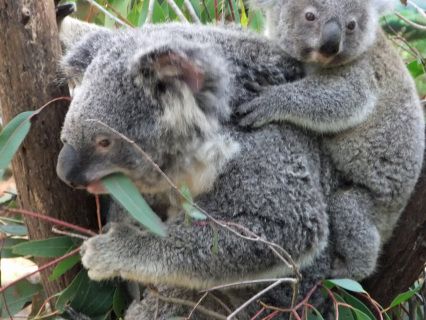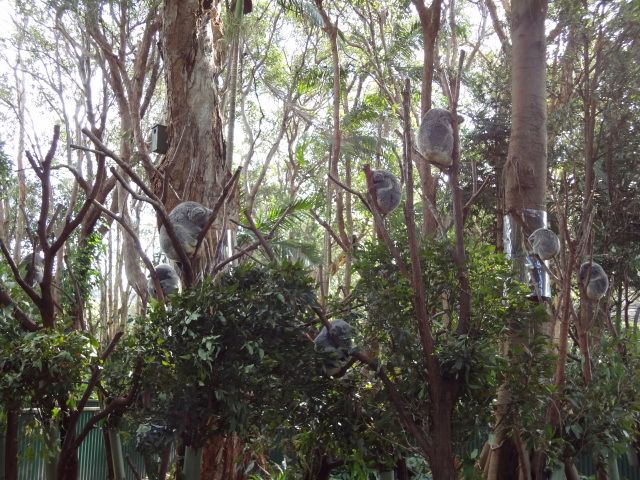 コアラは園内たくさんいます。コアラが木にたくさんいるコアラの木はとても微笑ましかったです。コアラの一つ一つの動作が本当にかわいらしくて気づけば長い間コアラを見ていました。寝てばかりで動かないのかなぁと思っていましたが、えさを食べたり思っていたより活動的でした。お母さんにしがみついてる赤ちゃんコアラも見ることができました。