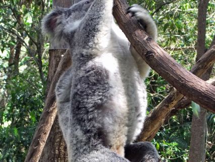 園内は山の傾斜を利用して作られており、下まで降りると上がってくるのが大変でした。コアラを見にいきましたが、2か所にコアラがいて、入口すぐの右手のコアラ館はやや離れてみる日本の動物園の感じ、もう1か所は別途料金20ドル?を入口で支払ってコアラを見ることができる施設でした。