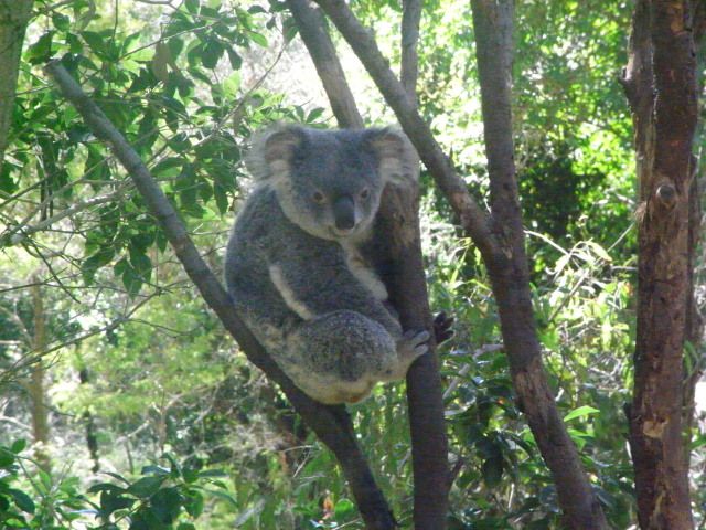 以前ケアンズに娘と行った時に訪れた動物園には、いくらか痩せているコアラはかなり過保護な程のされ方で1匹1本の木に止まらされていましたが、ここは違いました。