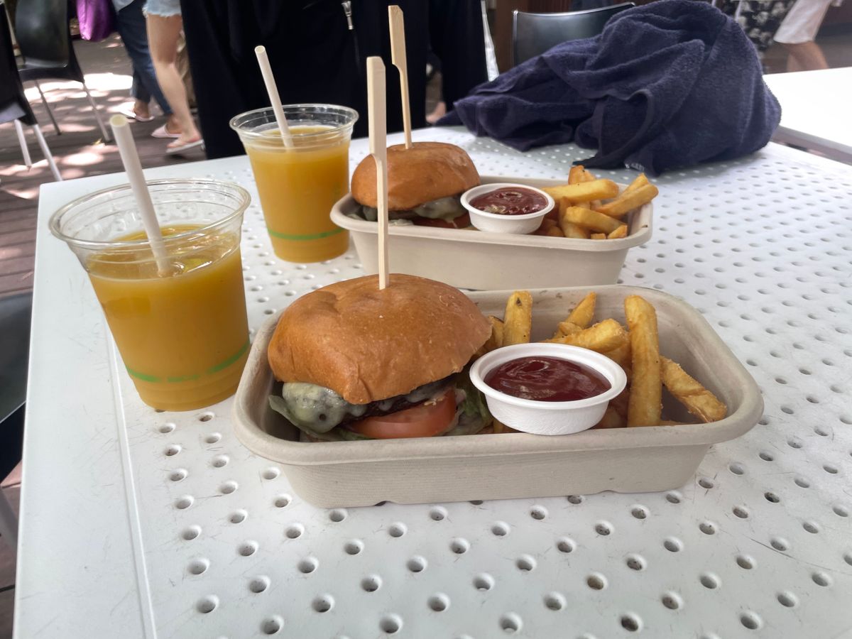 2日目は、1日目にグリーン島の体験ダイビングを予約してたのでチェックアウトした後に、9:30にダイビングショップに行って、安全説明を聞きました。その後桟橋でシュノーケリングしました。昨日より早い時間だったため海は深くサンゴ礁までたどり着くのに時間がかかりました。また、クラゲが昨日より増えており、クラゲよけスーツは借りて着てますが、水中ゴーグルから出てる顔の部分に当たるのが怖くて、1時間くらいで出ました。その後プールで遊んで、売店でバーガーを食べました。バーガーは美味しかったですが、鳥に狙われるのでゆっくり食べれませんでした。
